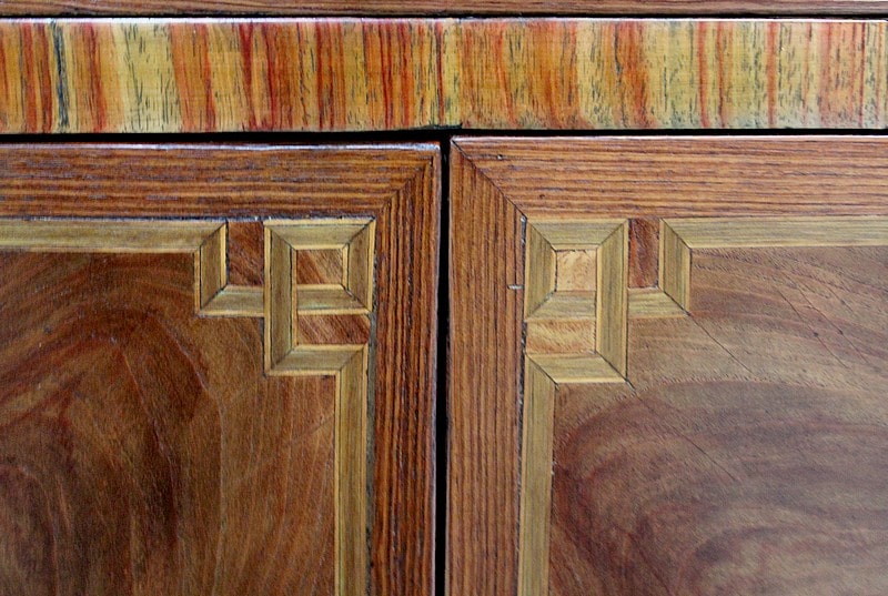 Les marquèteries sont encadrées de filets de bois teinté et de Citronnier.