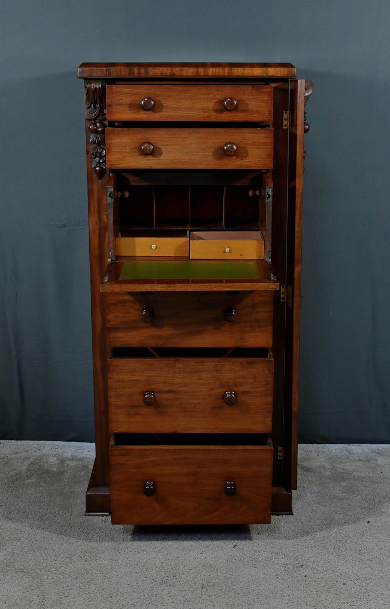 Petit Secrétaire Wellington en Acajou, époque Victorienne, Angleterre – 2ème partie XIXe