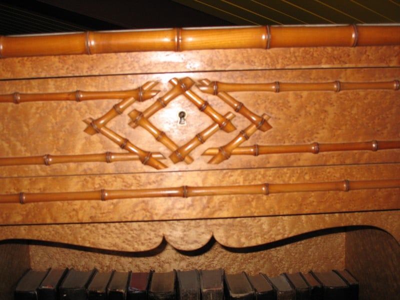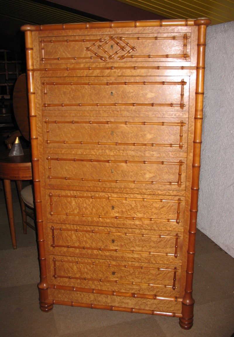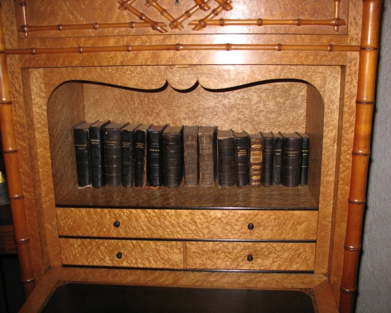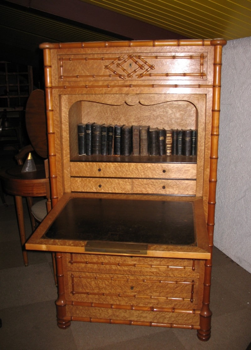 Joli petit Secrétaire en merisier et moucheté d’érable, dans le style Bambou de l’époque 1920.