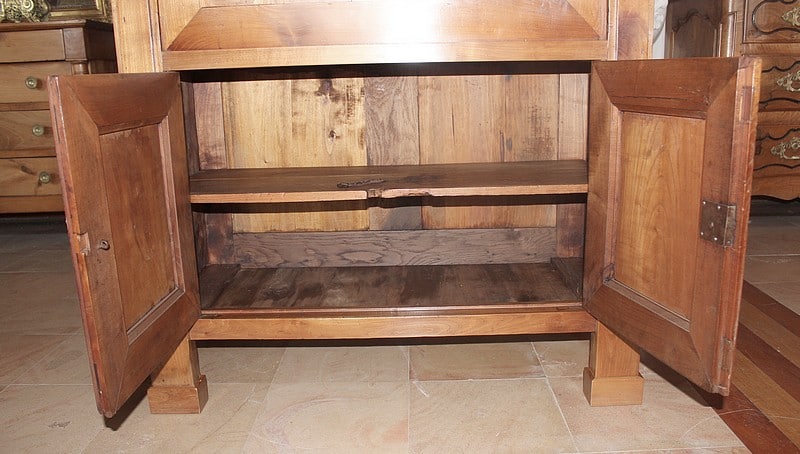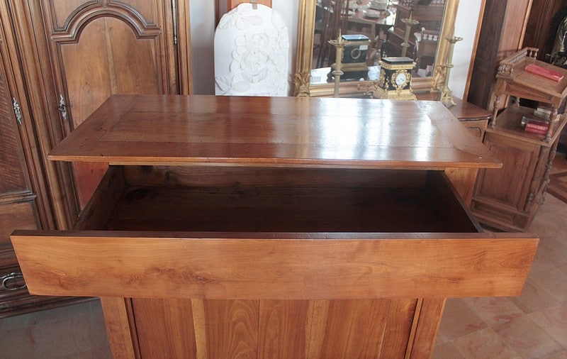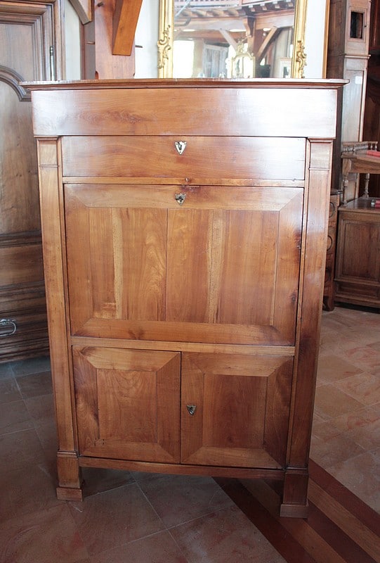 Grand Secrétaire Directoire de propriété en merisier massif. dessus bois. Il ouvre par 2 tiroirs en partie haute, 1 abattant et 2 portes en partie basse.