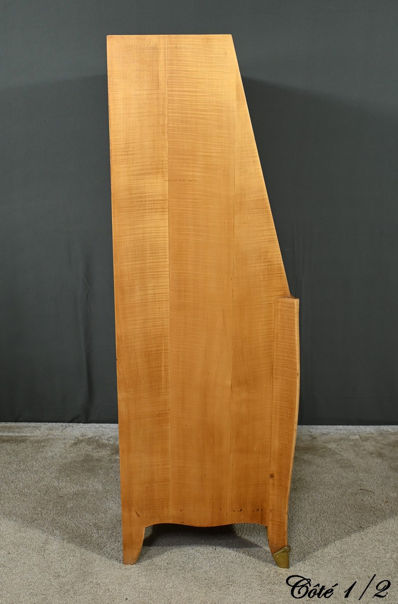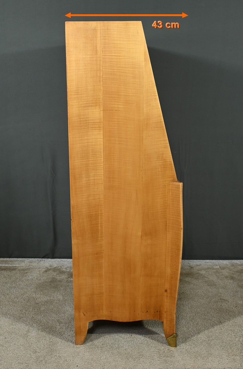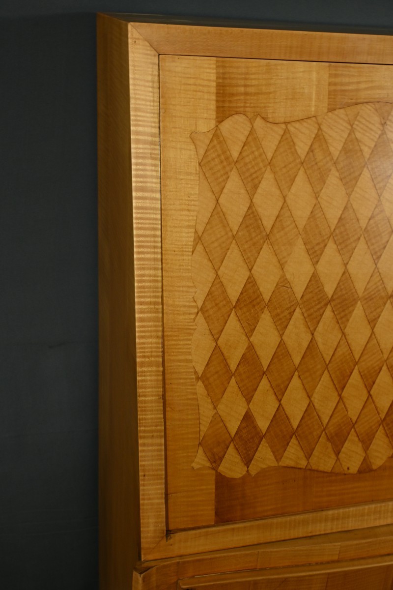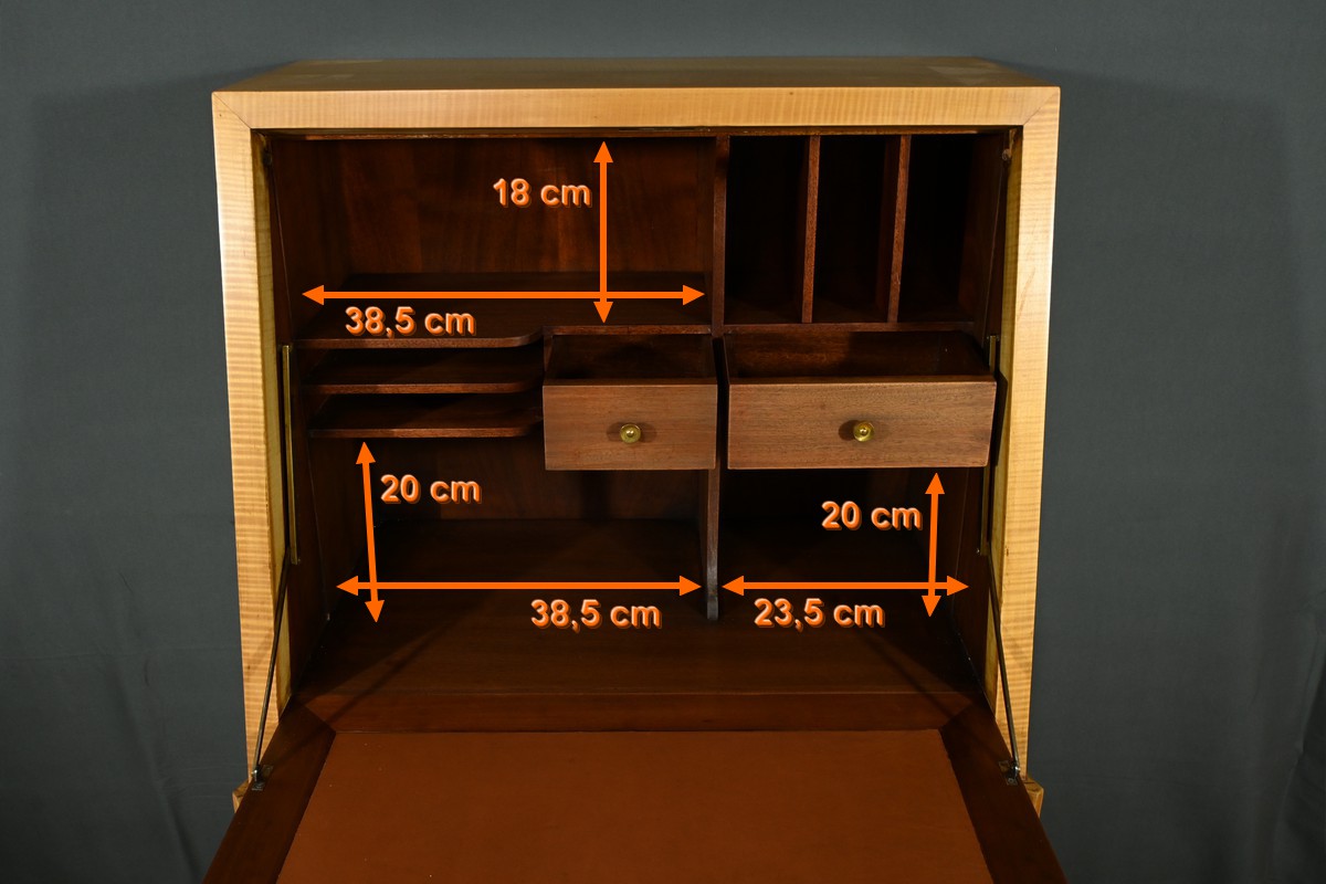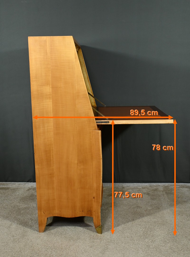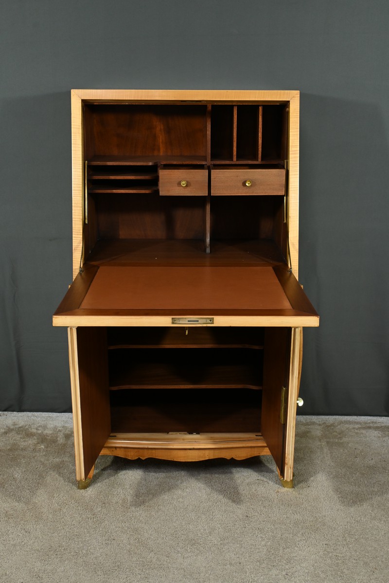 Ce secrétaire art déco, datant des années 1950, est une véritable œuvre d’art en marqueterie de citronnier.