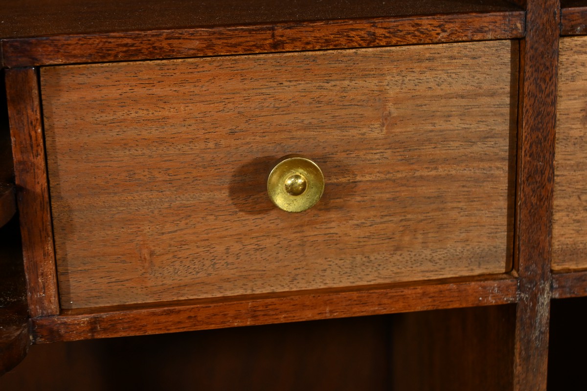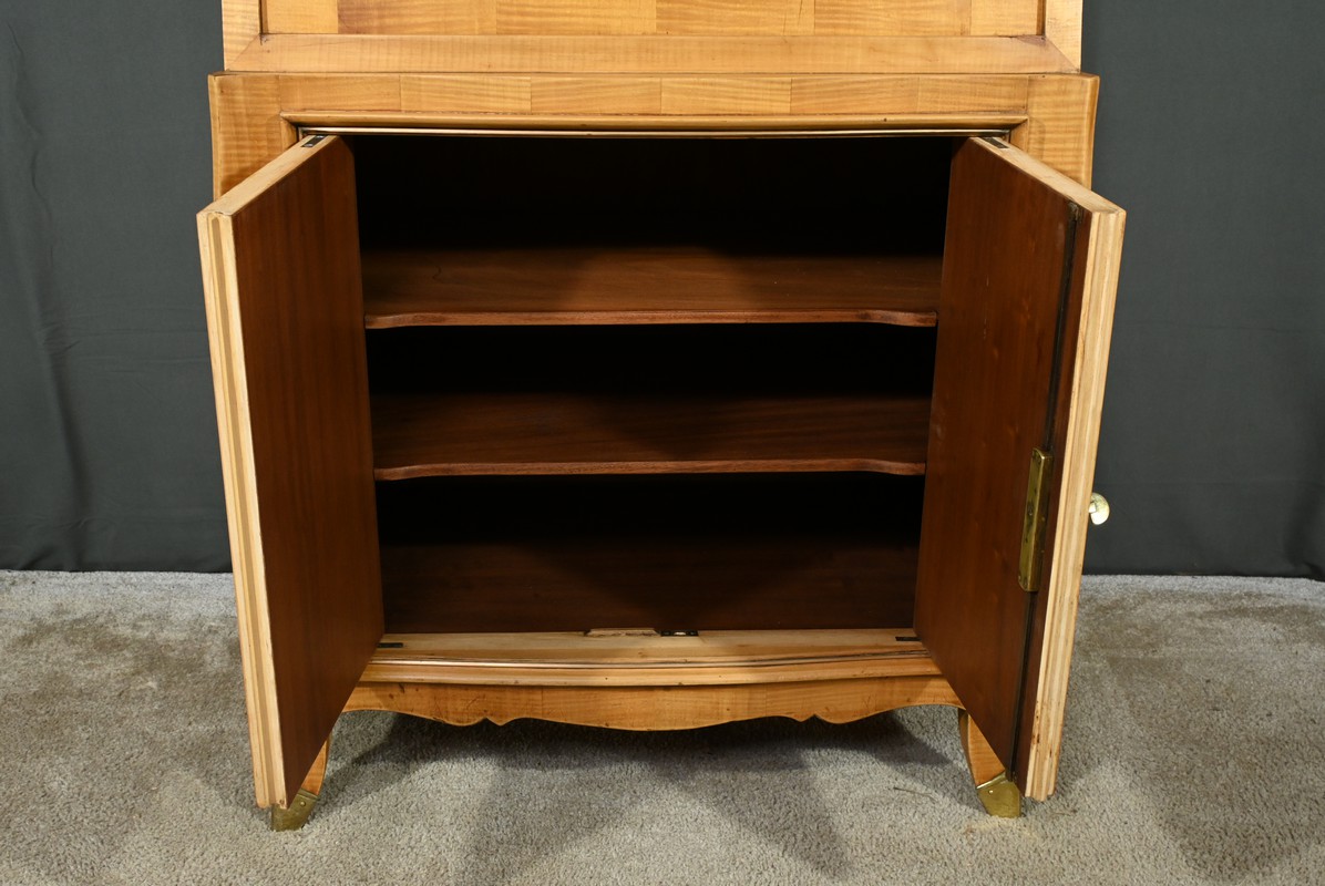La partie basse du secrétaire cache deux étagères derrière deux vantaux.