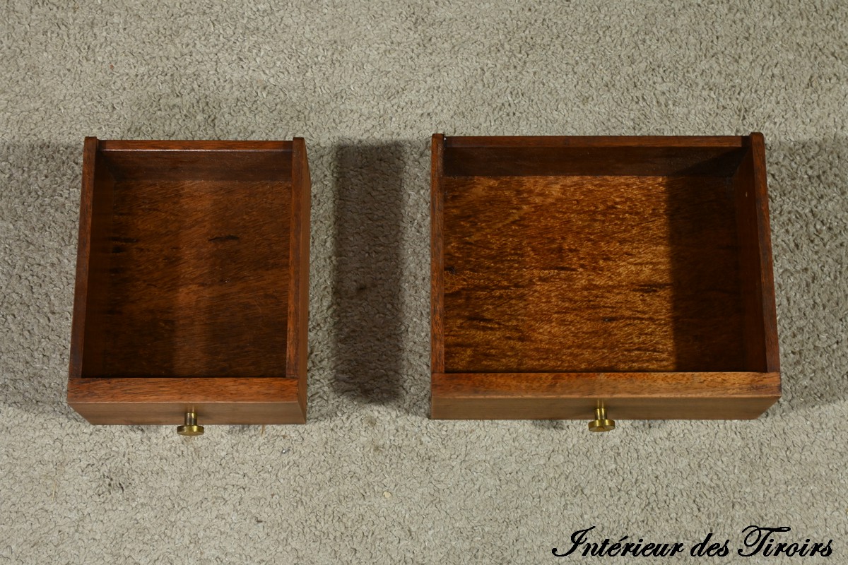 Le design géométrique et les matériaux exotiques utilisés sont typiques de l’époque art déco.