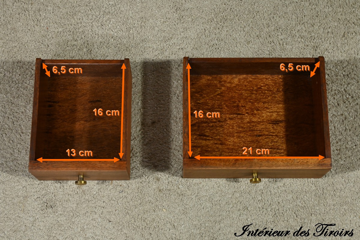 À l’intérieur, deux tiroirs et divers espaces de rangement.