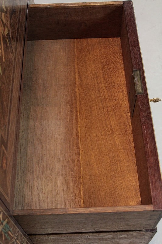 L’arrière, les fonçures et les intérieurs des tiroirs sont en chêne.