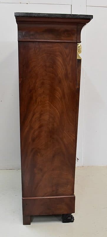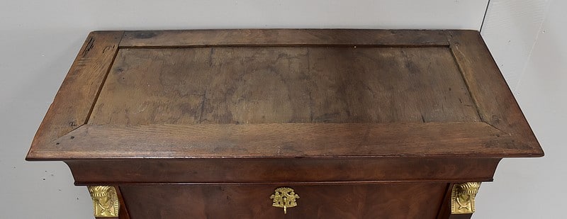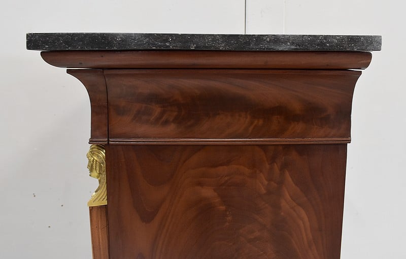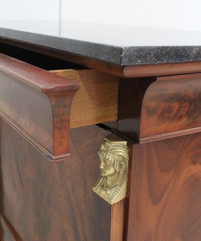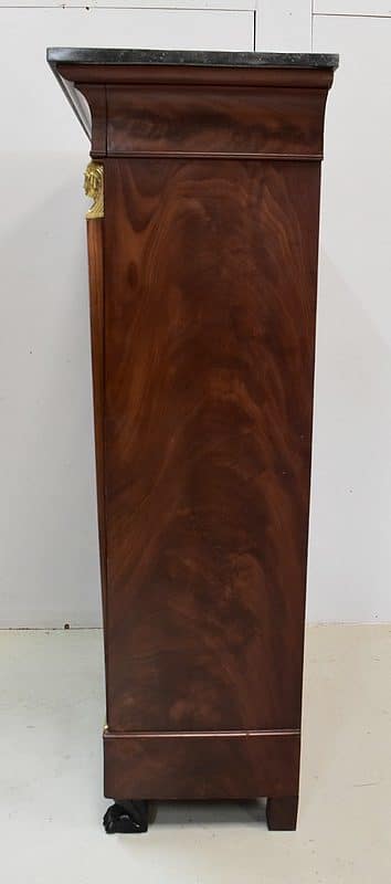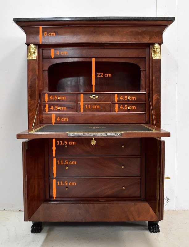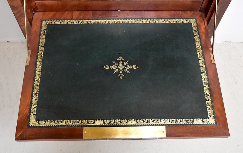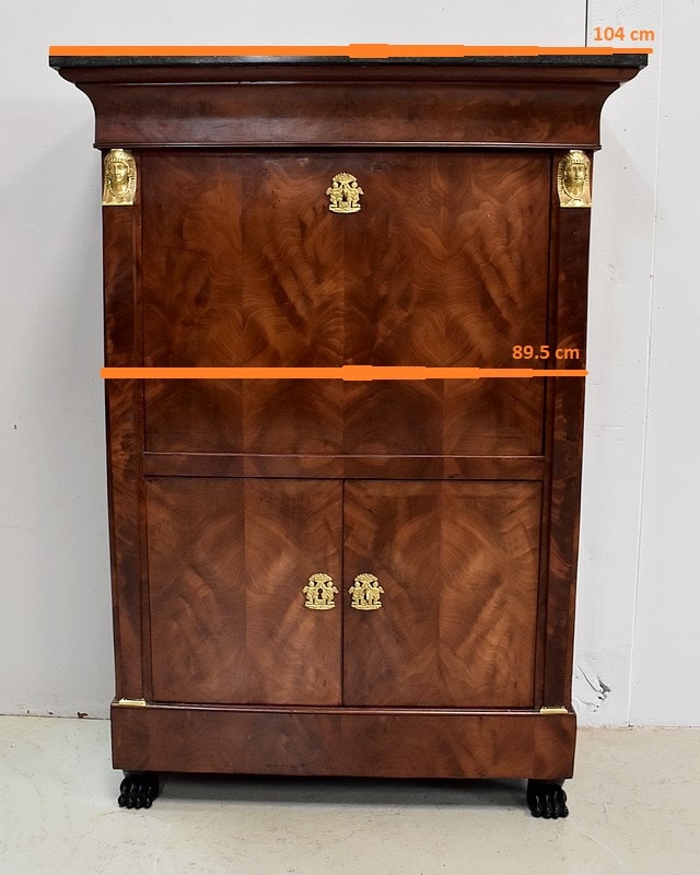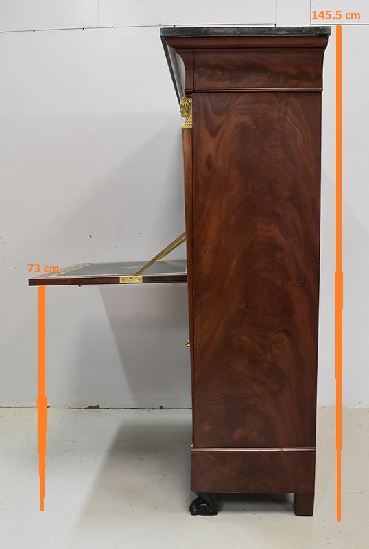 Secrétaire ‘Retour d’Égypte’, en Placage de Ronce d’Acajou, avec dessus Marbre à dominante Gris foncé discrètement nuancé de Noir et de Blanc.