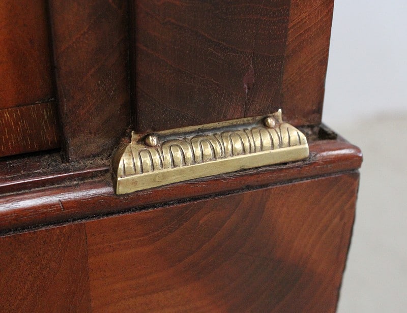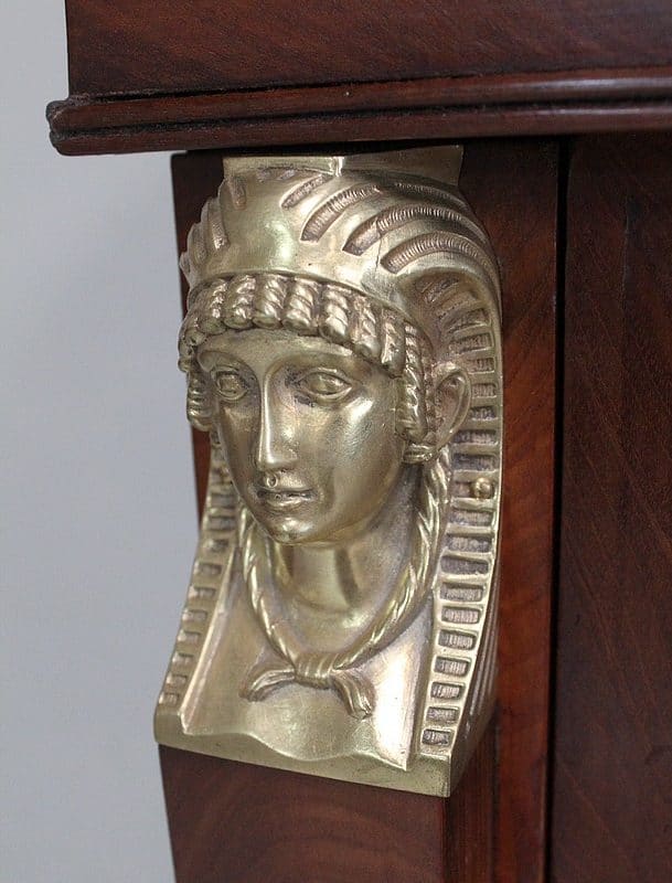 Les montants avants sont en Pilastres gainés. Ils sont surmontés de Bustes Égyptiens à Coiffes Némès, et terminés par des Bagues en Bronze ciselé.