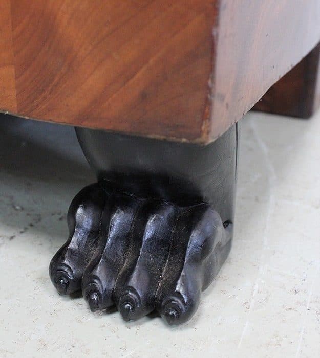 L’ensemble repose à l’avant sur deux pieds Griffes en Bois Noirci et à l’arrière sur deux pieds droits.