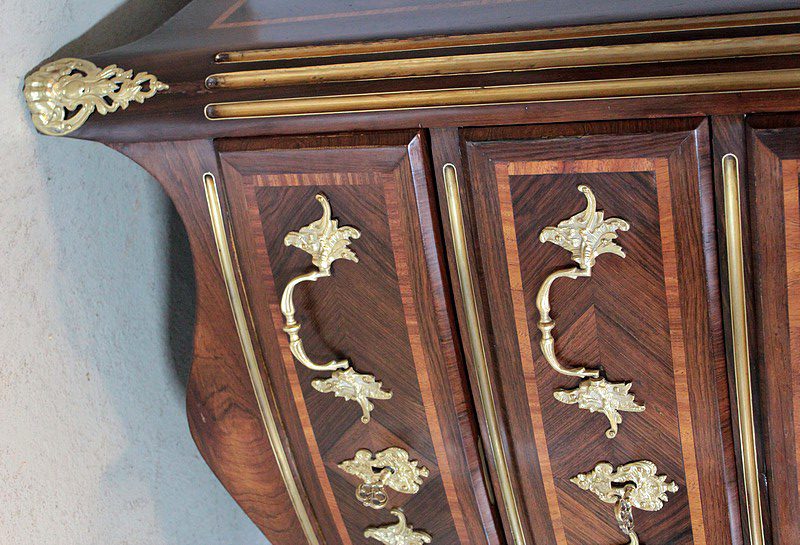 Parfait état après restauration dans notre atelier et finition verni. Dépose, nettoyage et repose des bronzes. Serrures et clés en état de fonctionnement.
