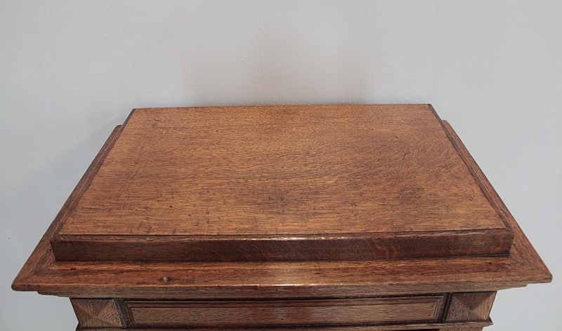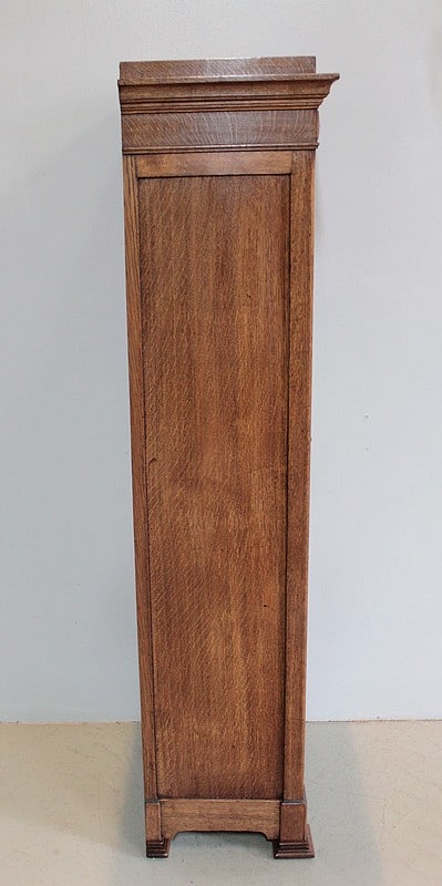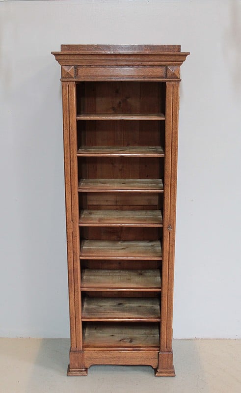Meuble cartonnier en chêne à 8 casiers. (Possibilité de refaire les cartons). Les étagères sont en sapin avec un champ en chêne de 2cm de profondeur.