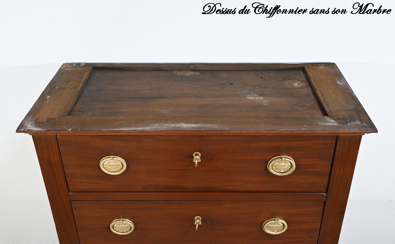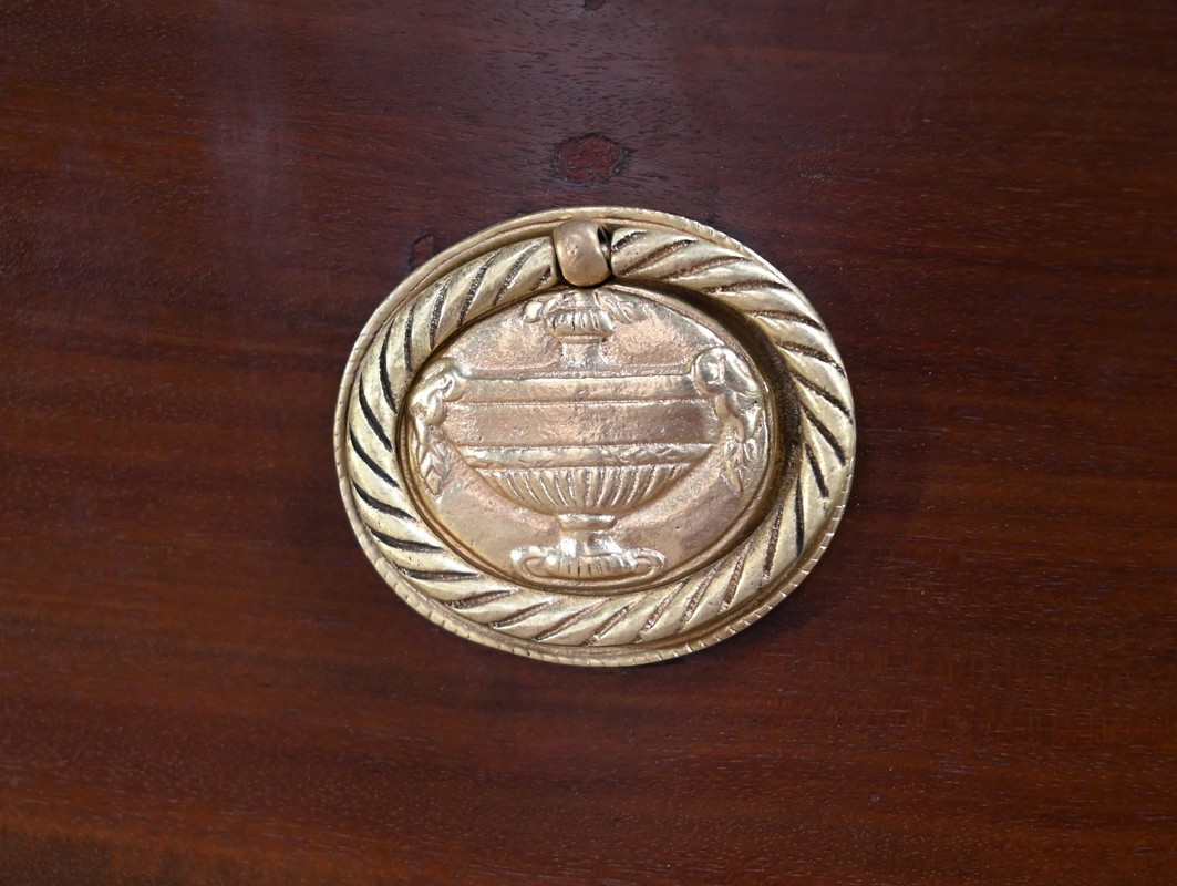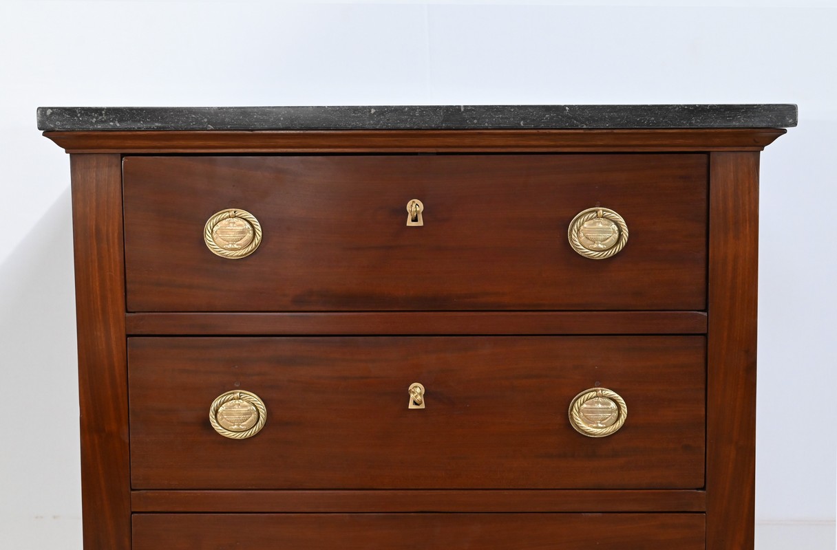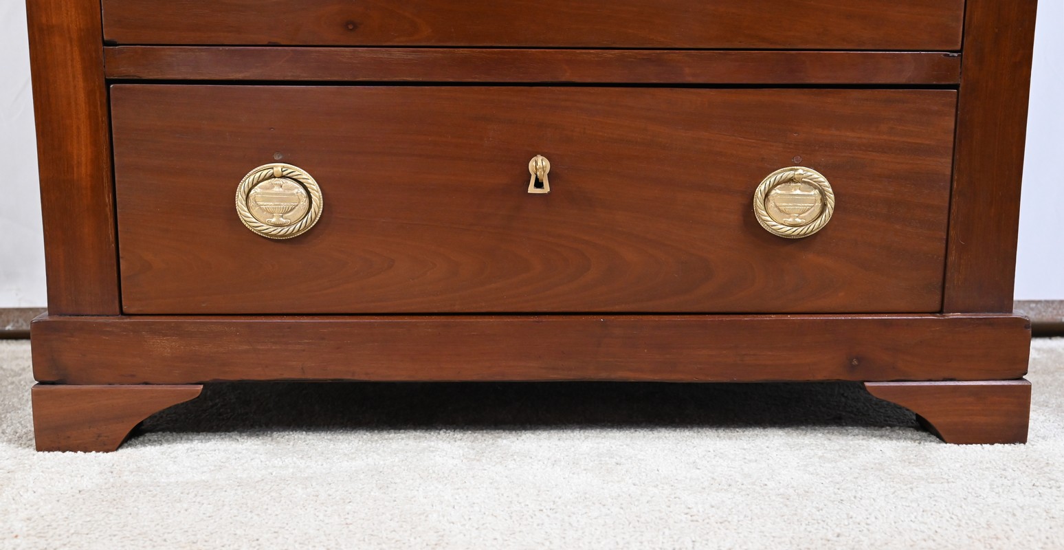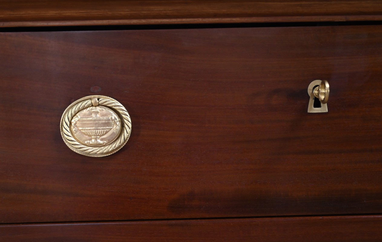 Ce chiffonnier en acajou plaira pour sa faible profondeur et ses lignes droites propres au courant directoire.