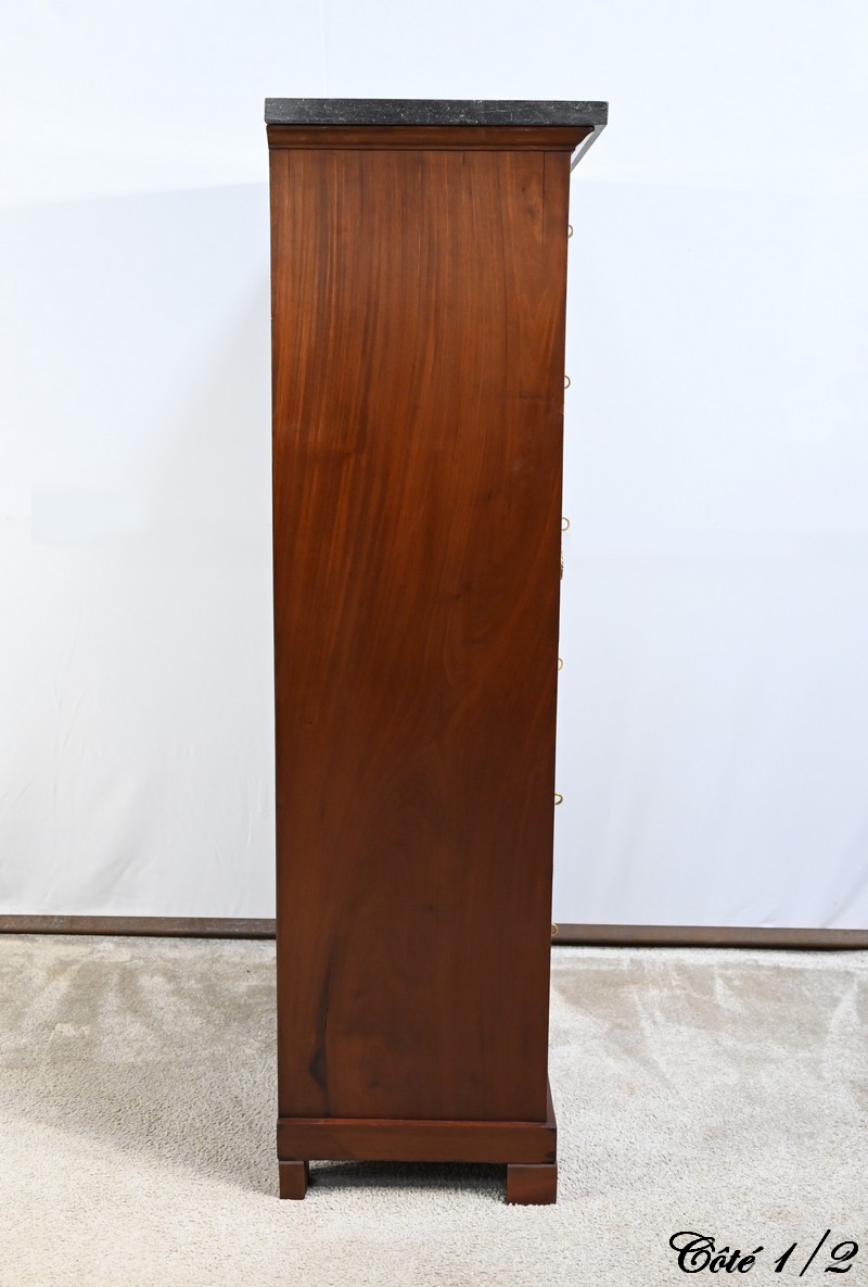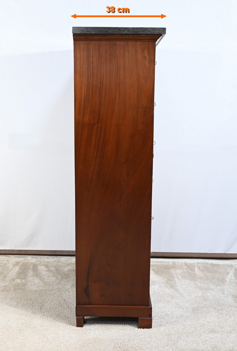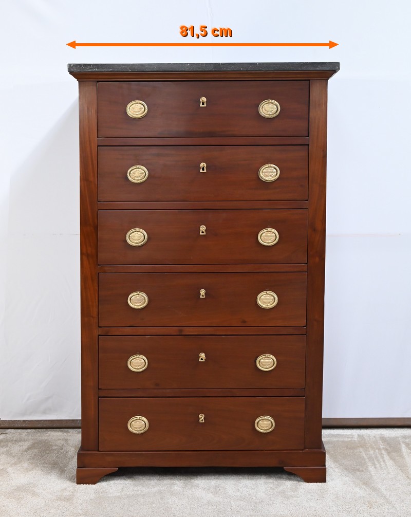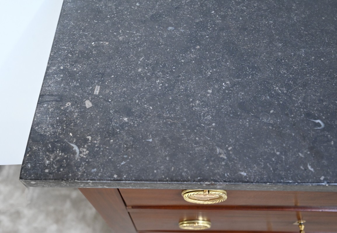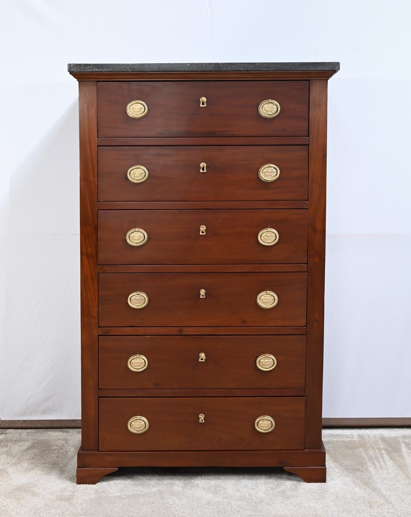 Ce chiffonnier en acajou plaira pour sa faible profondeur et ses lignes droites propres au courant directoire.