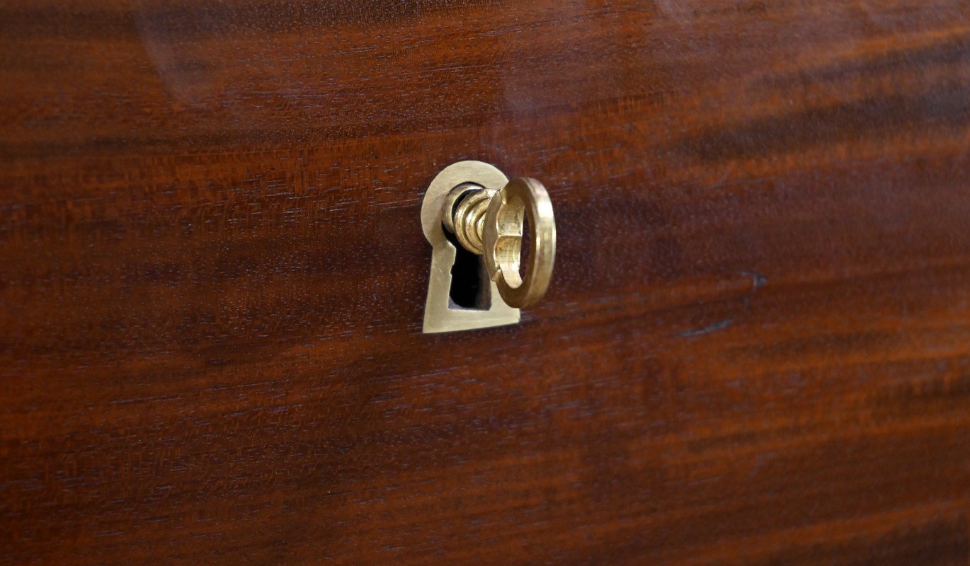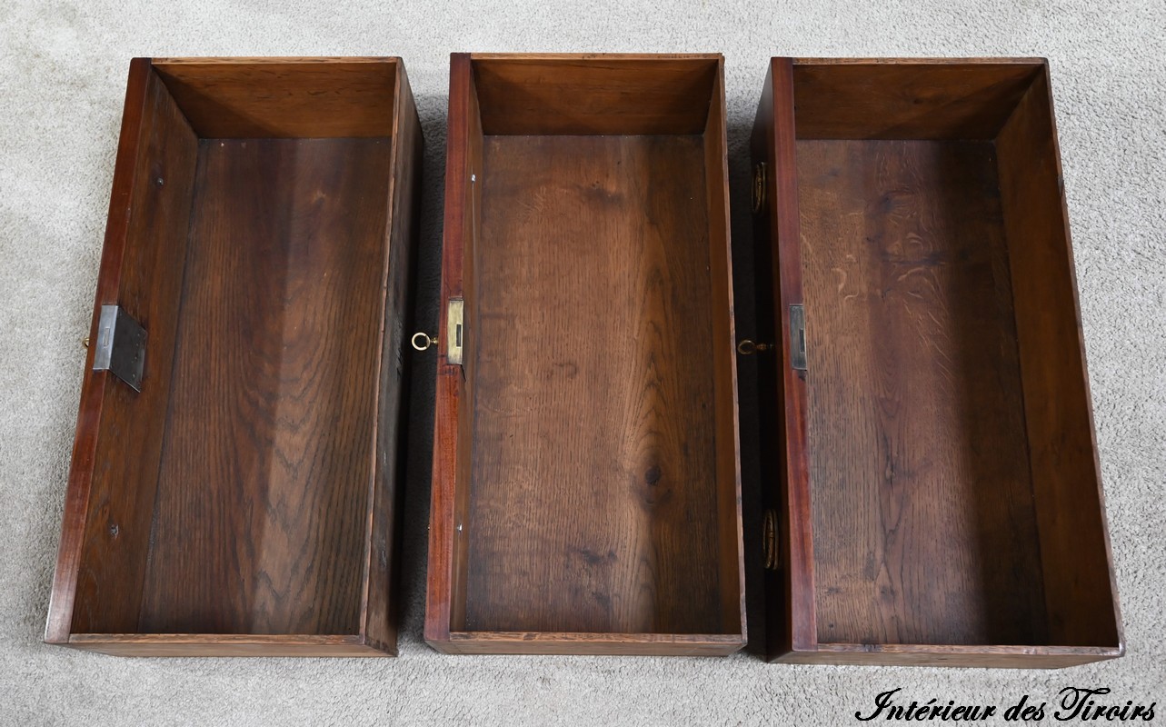 Ces tiroirs sont chacun muni d’une serrure authentique avec entrée filet et clé postérieure.