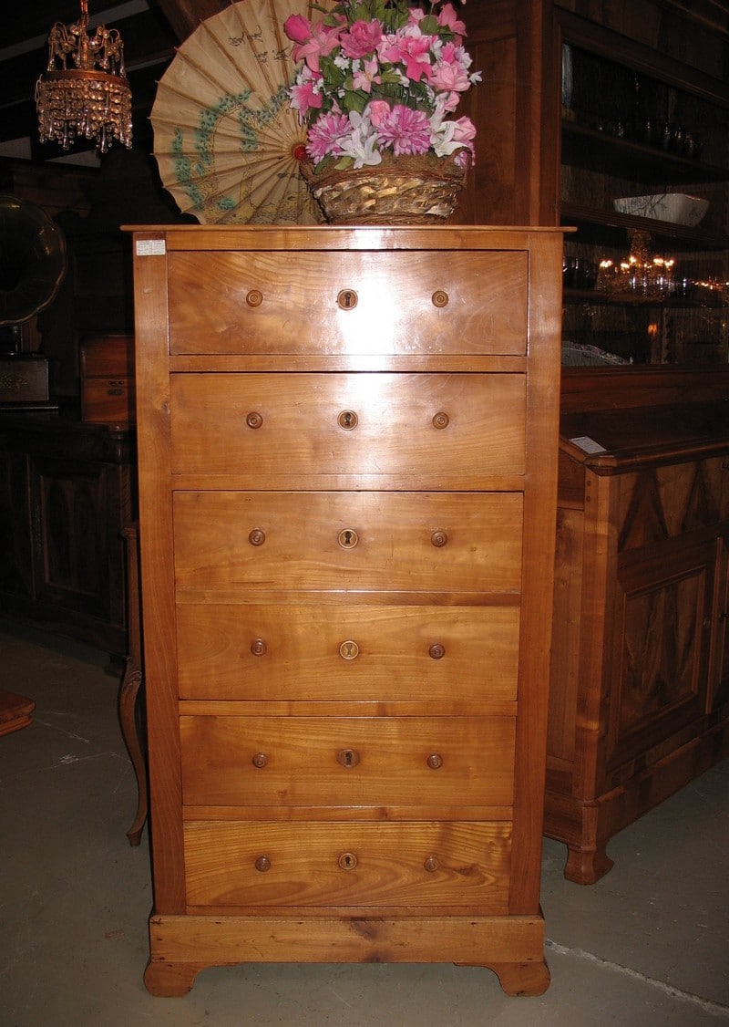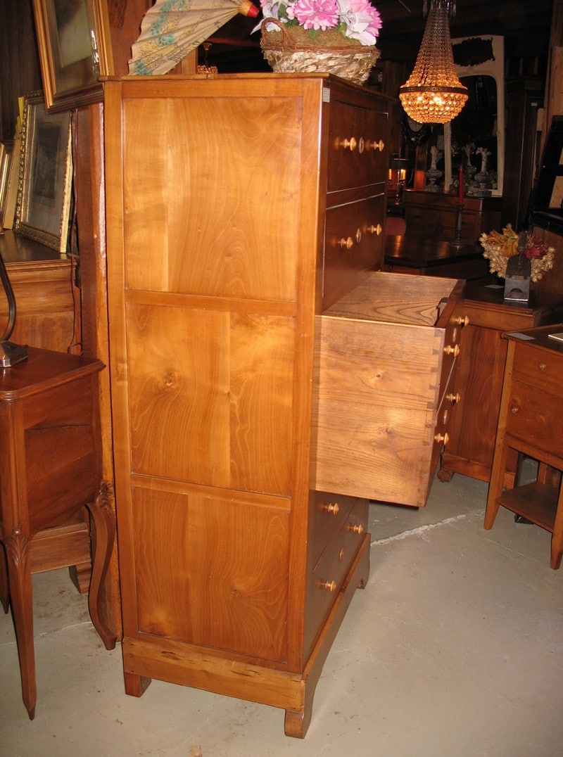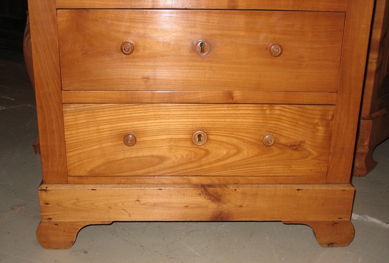 Chiffonnier Louis-Philippe en merisier blond massif ouvrant par 2 tiroirs en partie haute, 1tiroir double au milieu et 2 tiroirs en partie basse.