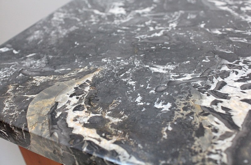 Le dessus de ce Semainier est un Marbre à dominante Gris avec un fin veinage Blanc.