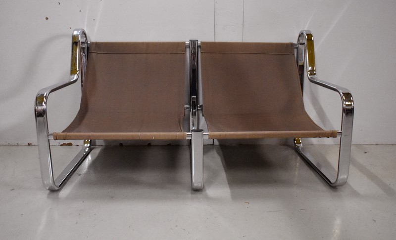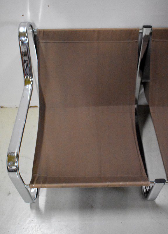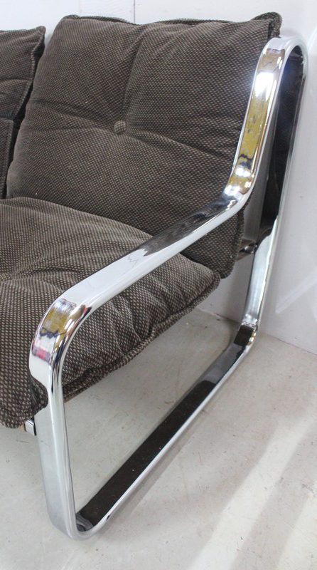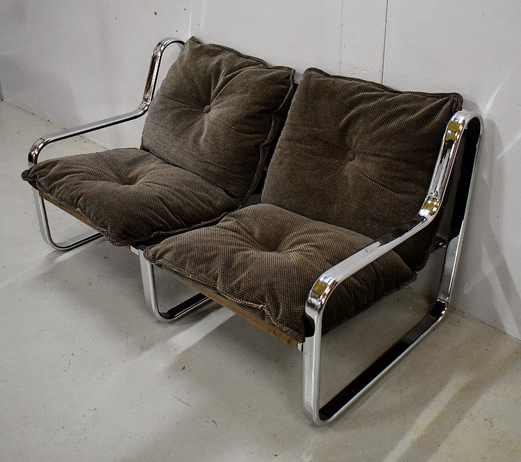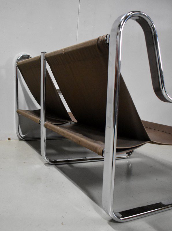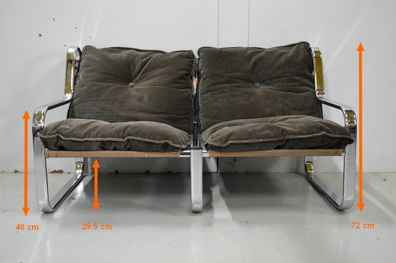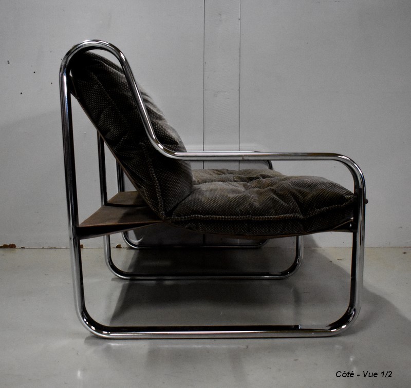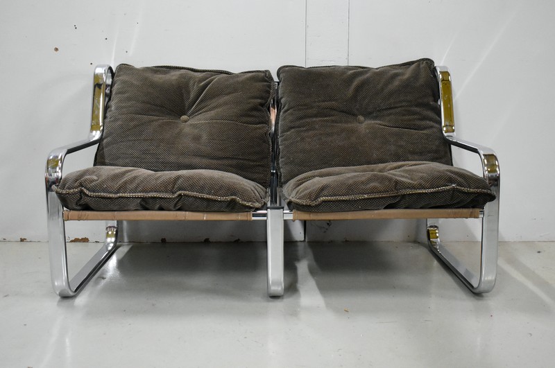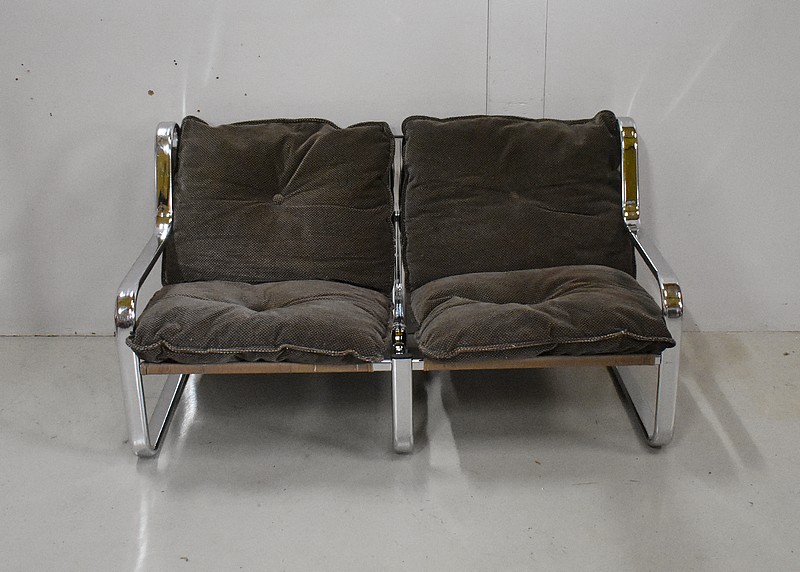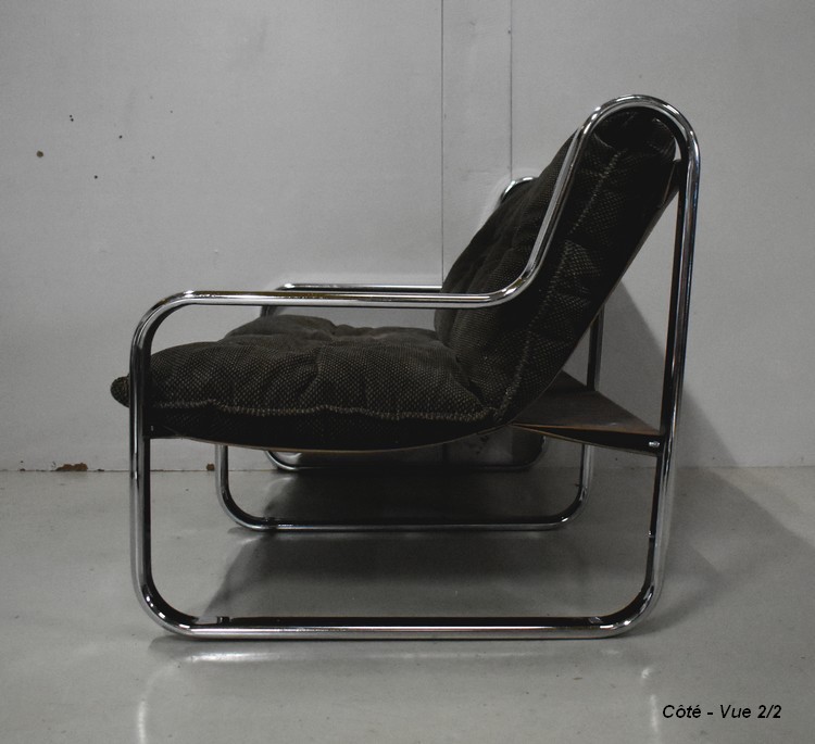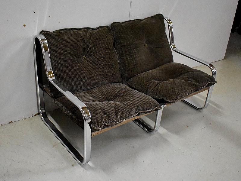 Confortable Banquette Vintage, deux places, avec Ossature en Métal Chromé.