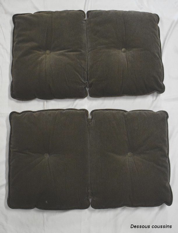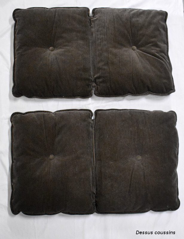 Deux coussins, en Feutrine Marron, cousus ensemble par un côté, viennent épouser cette Toile.