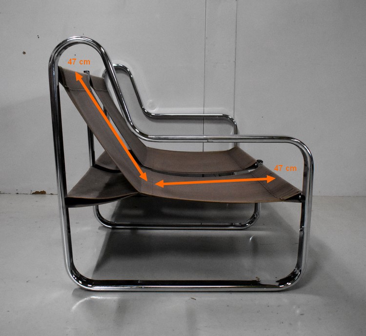 Très bon État, quelques traces d’usures sur la toile d’assise, légères éraflures sur le métal. Voir photos.