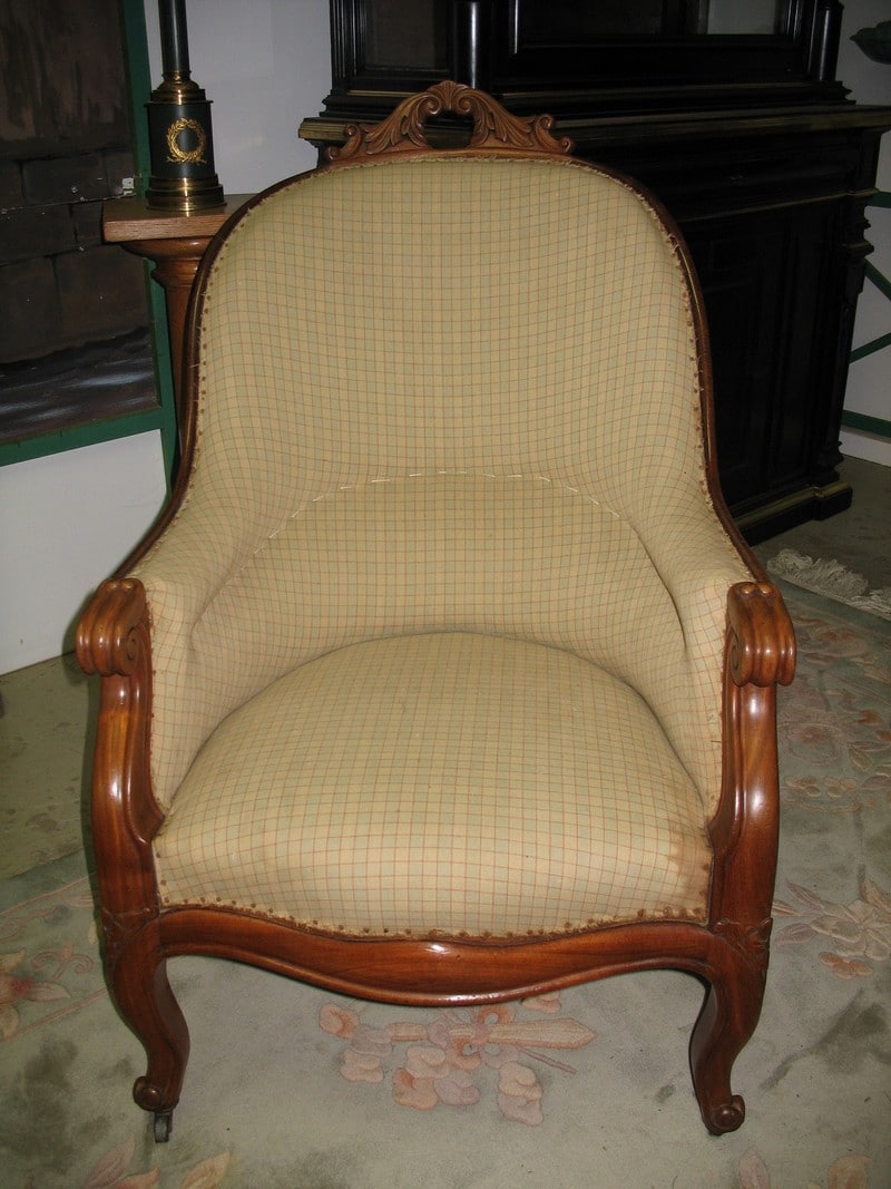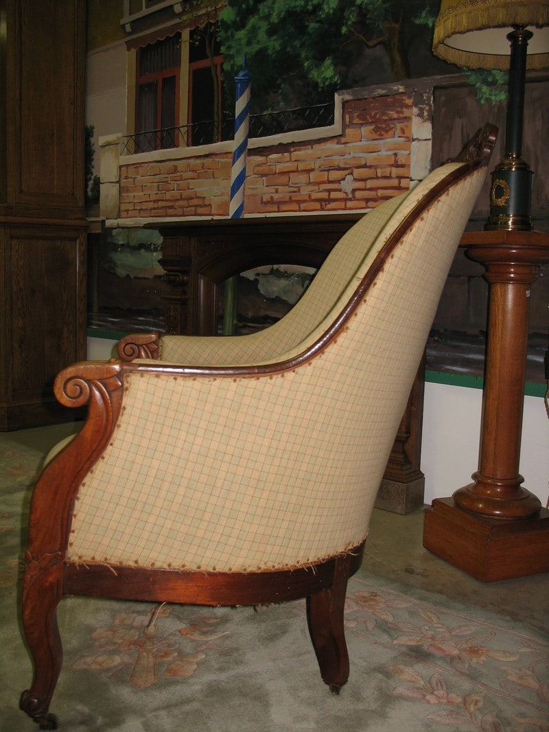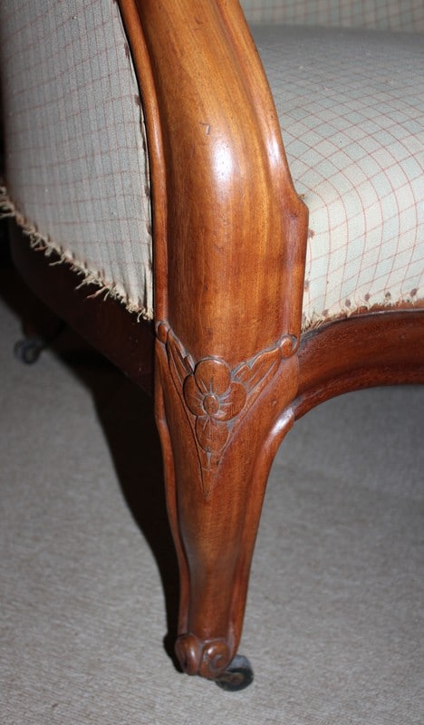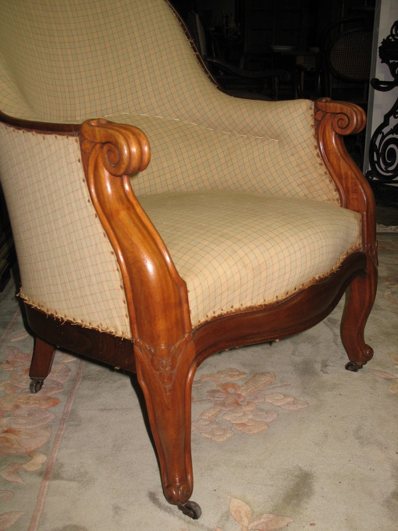 Jolie Bergère de style Louis XV en acajou, époque NAPOLÉON III (seconde moitié du XIXe). Le fût a été entièrement révisé et équerré et la tapisserie refaite à l’ancienne, avec crins et ressorts.