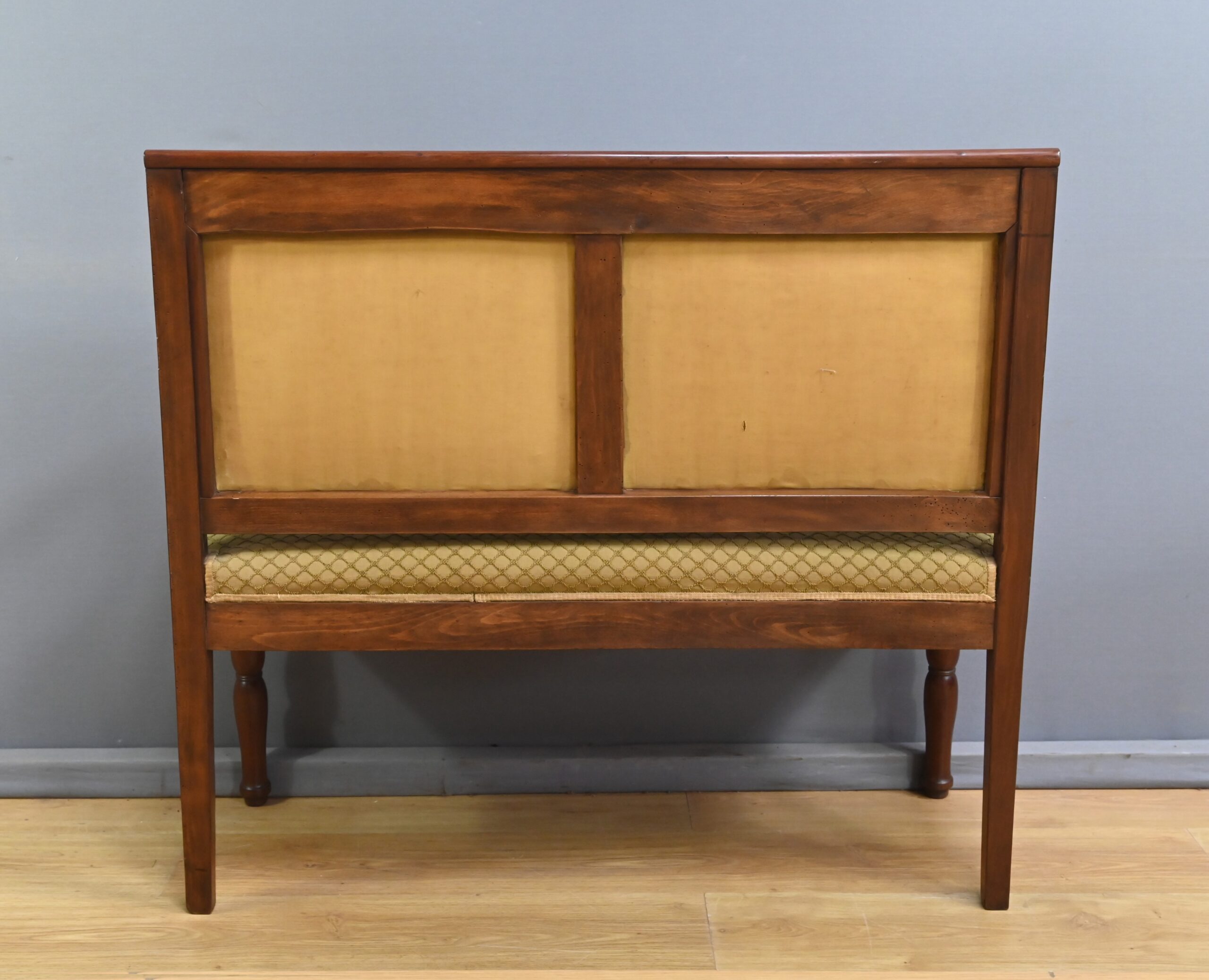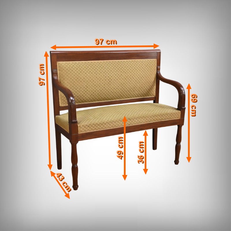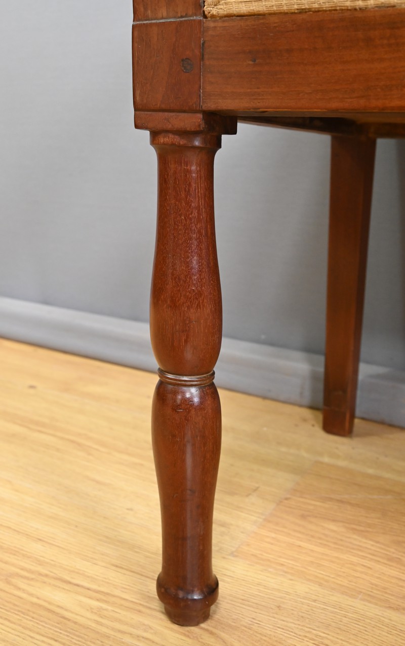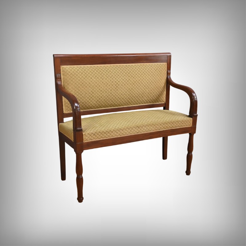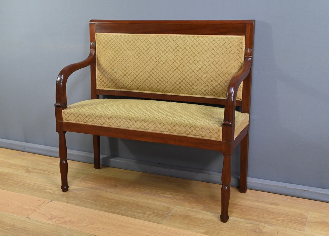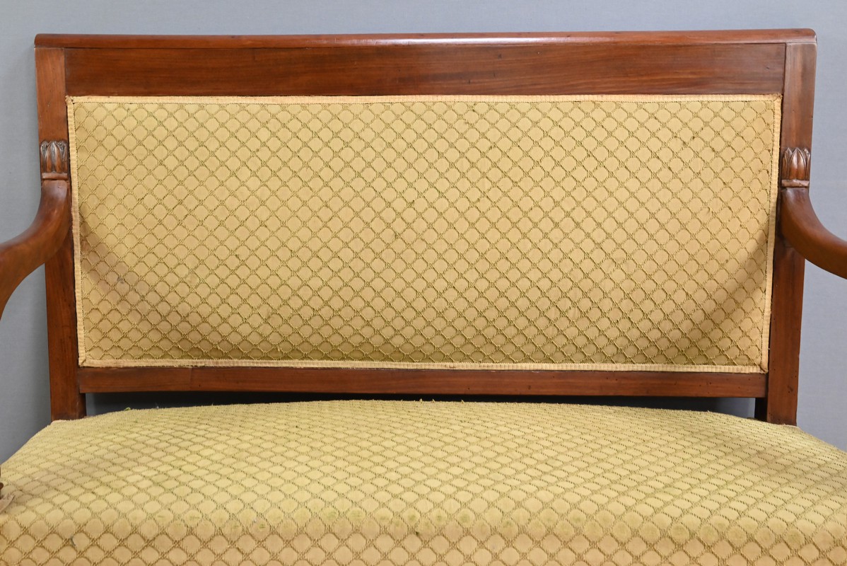 À la fois fonctionnelle et décorative, ce canapé de palier illustre l’élégance mesurée et le goût pour les lignes équilibrées qui marquèrent le mobilier de la Restauration.