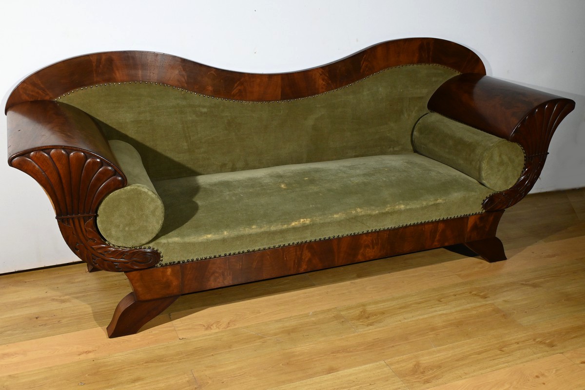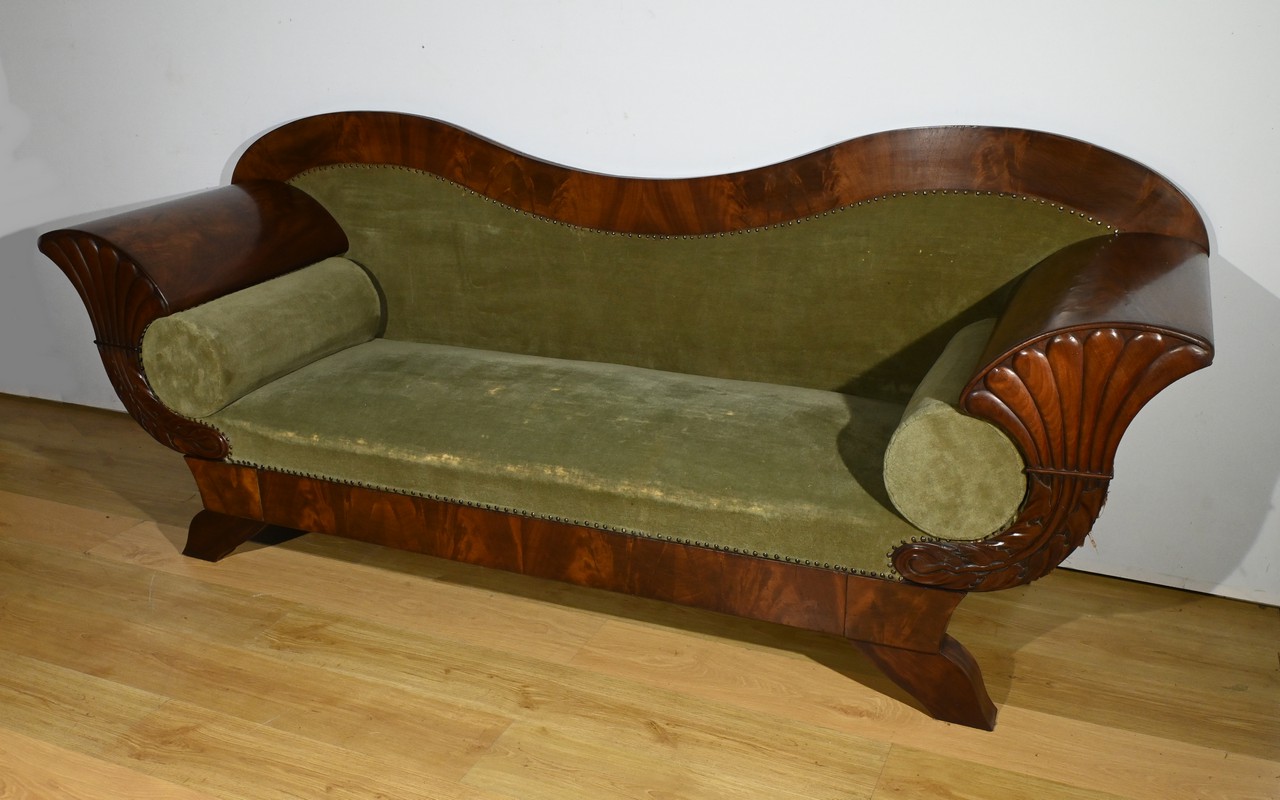Canapé en Ronce d’Acajou, style Biedermeier – Fin XIXe