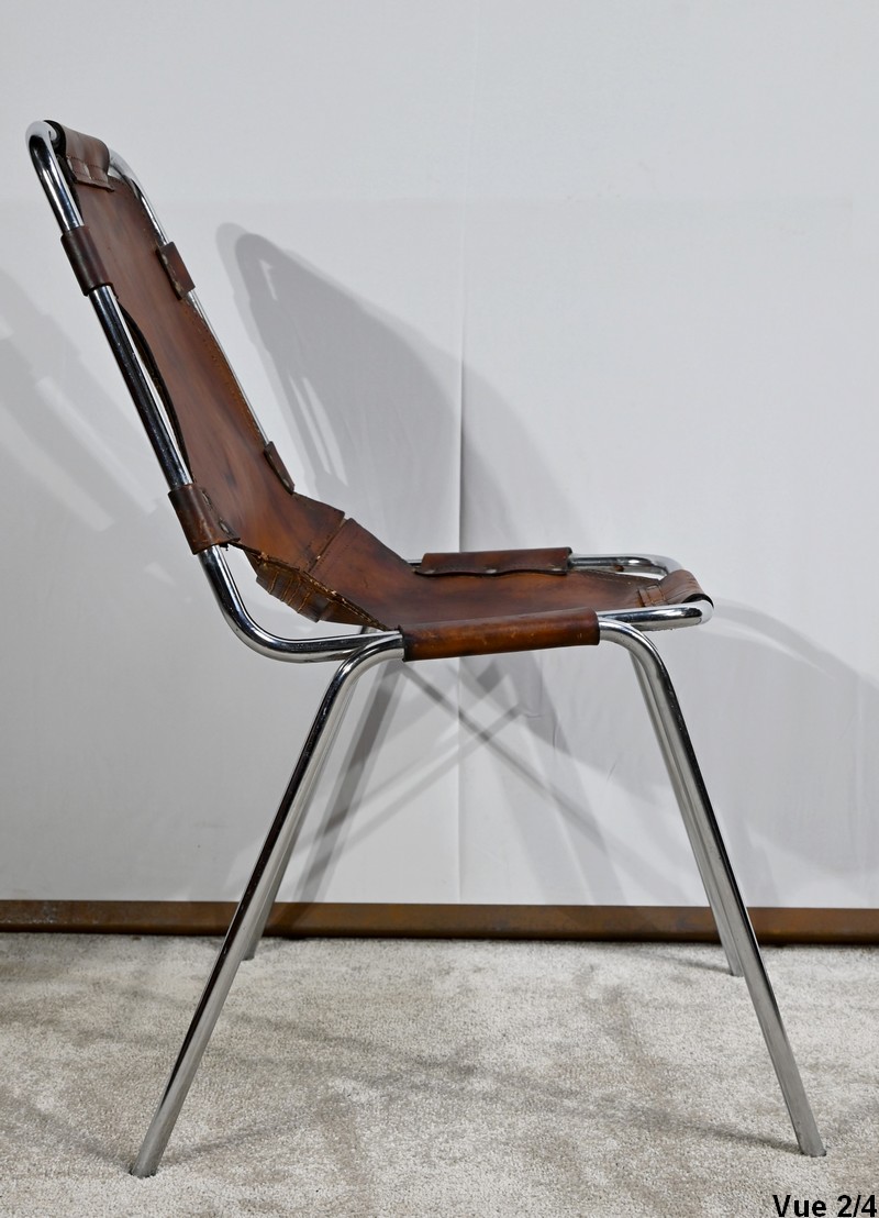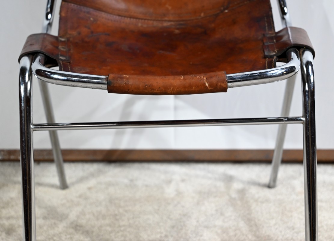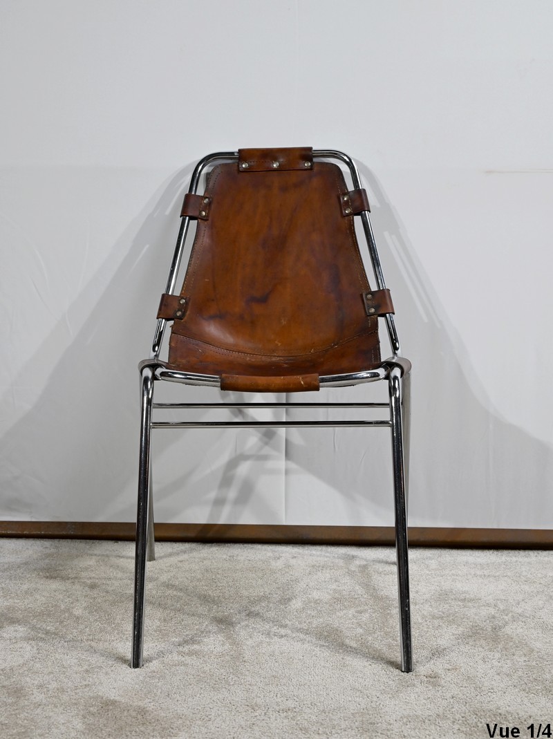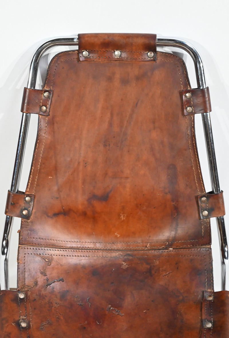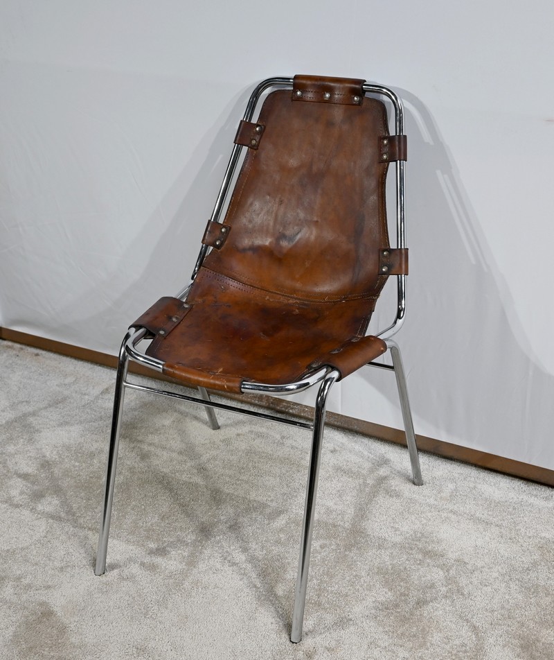 Chaise en Métal et Cuir, par C.Perriand pour les Arcs – 1960