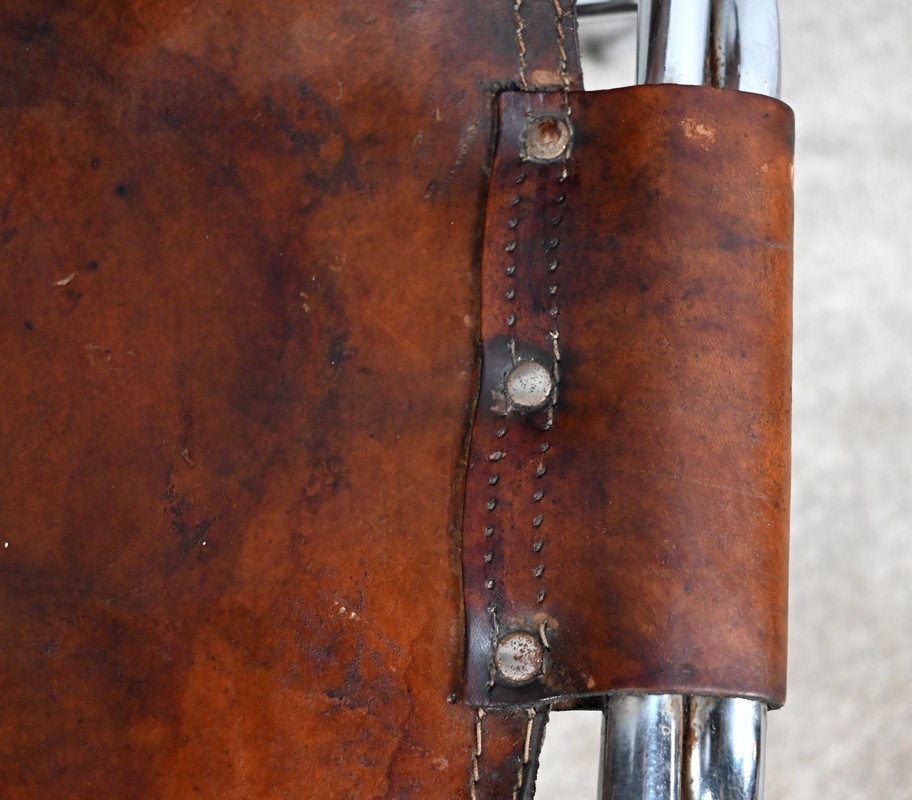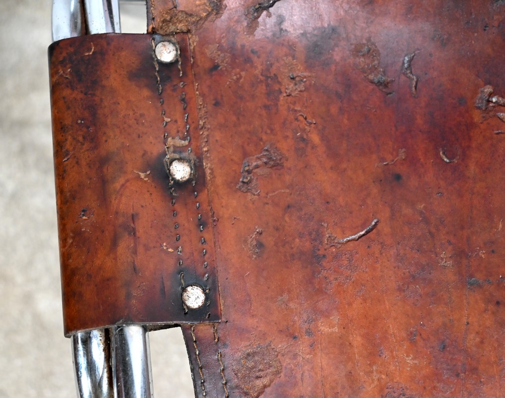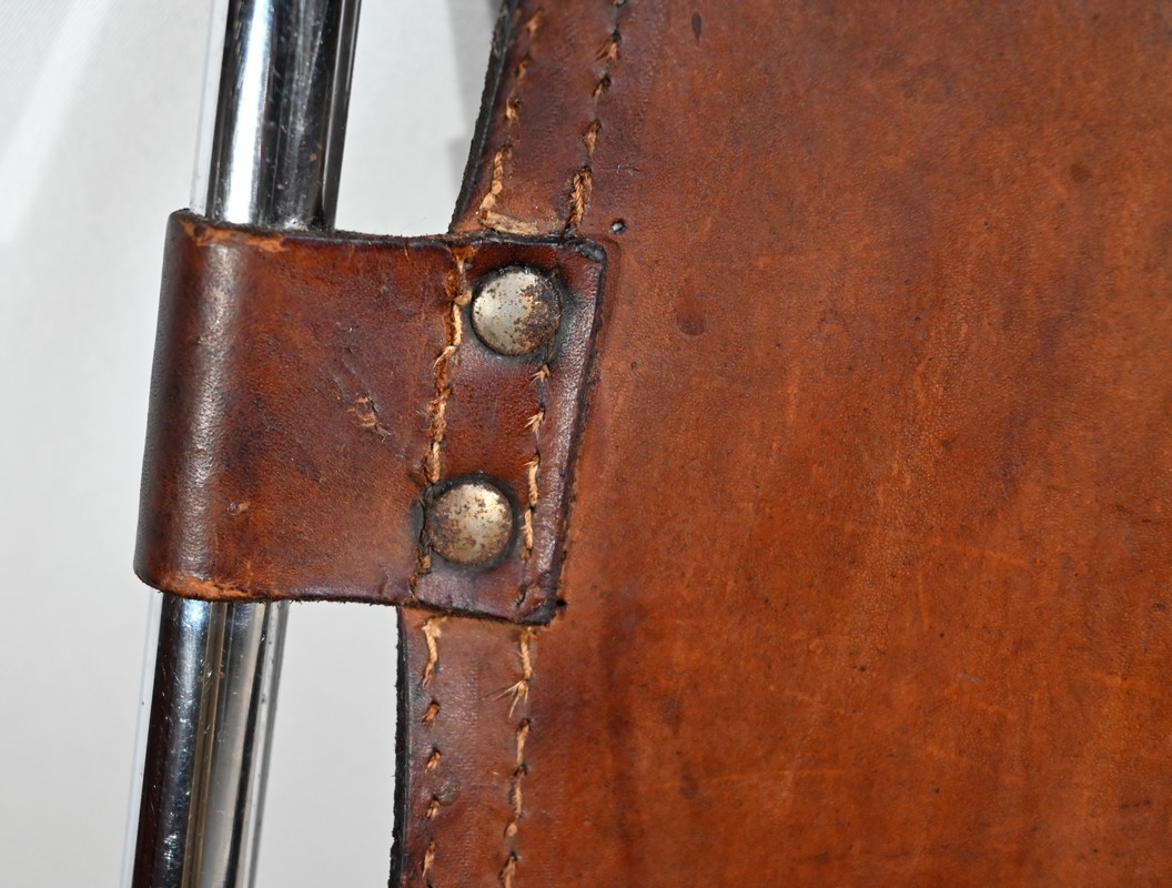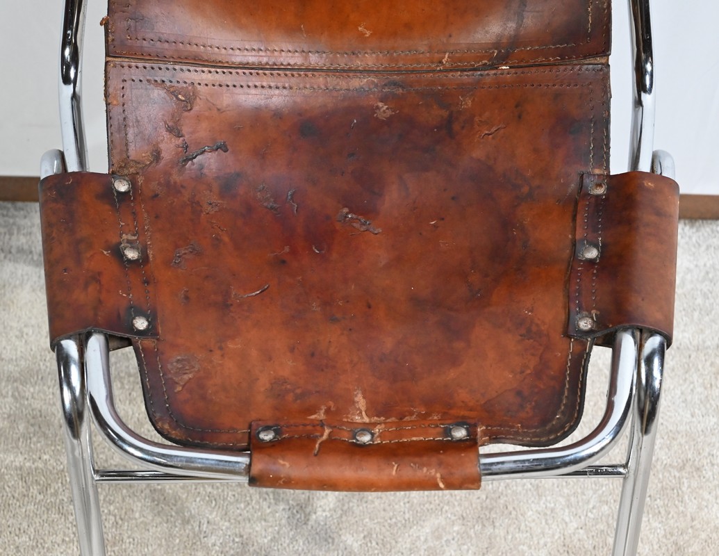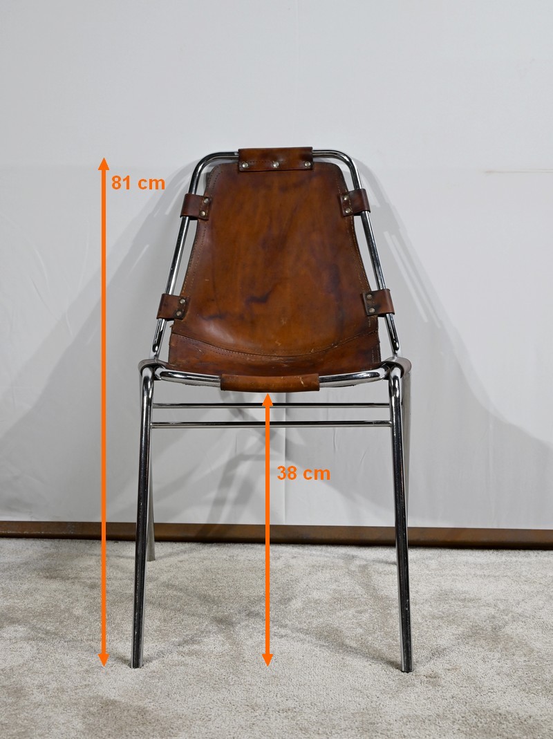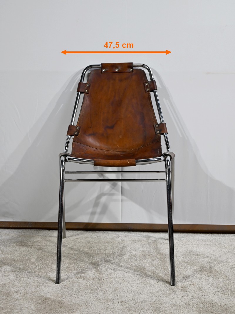 Chaise en Métal et Cuir, par C.Perriand pour les Arcs – 1960
