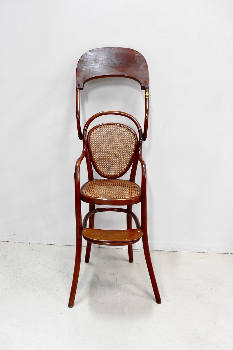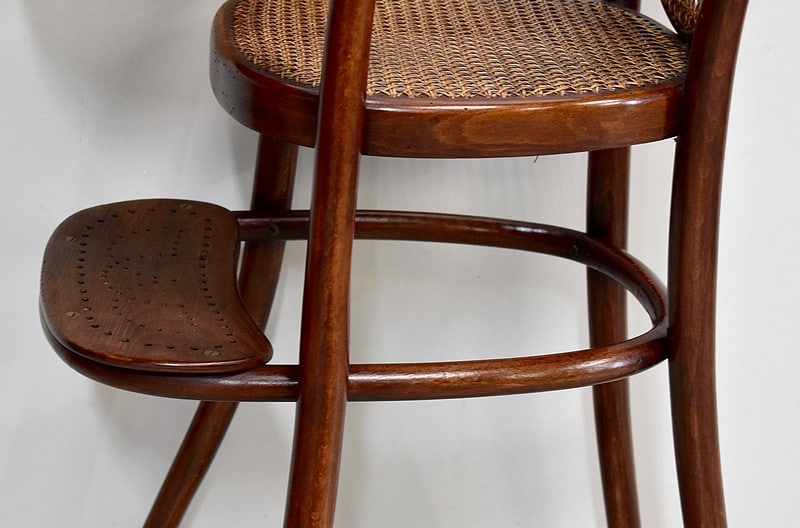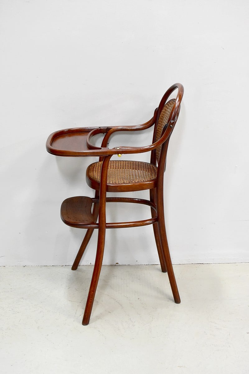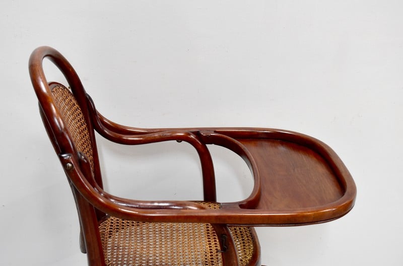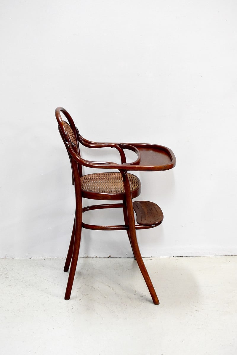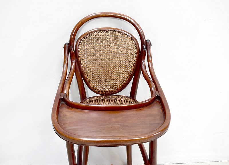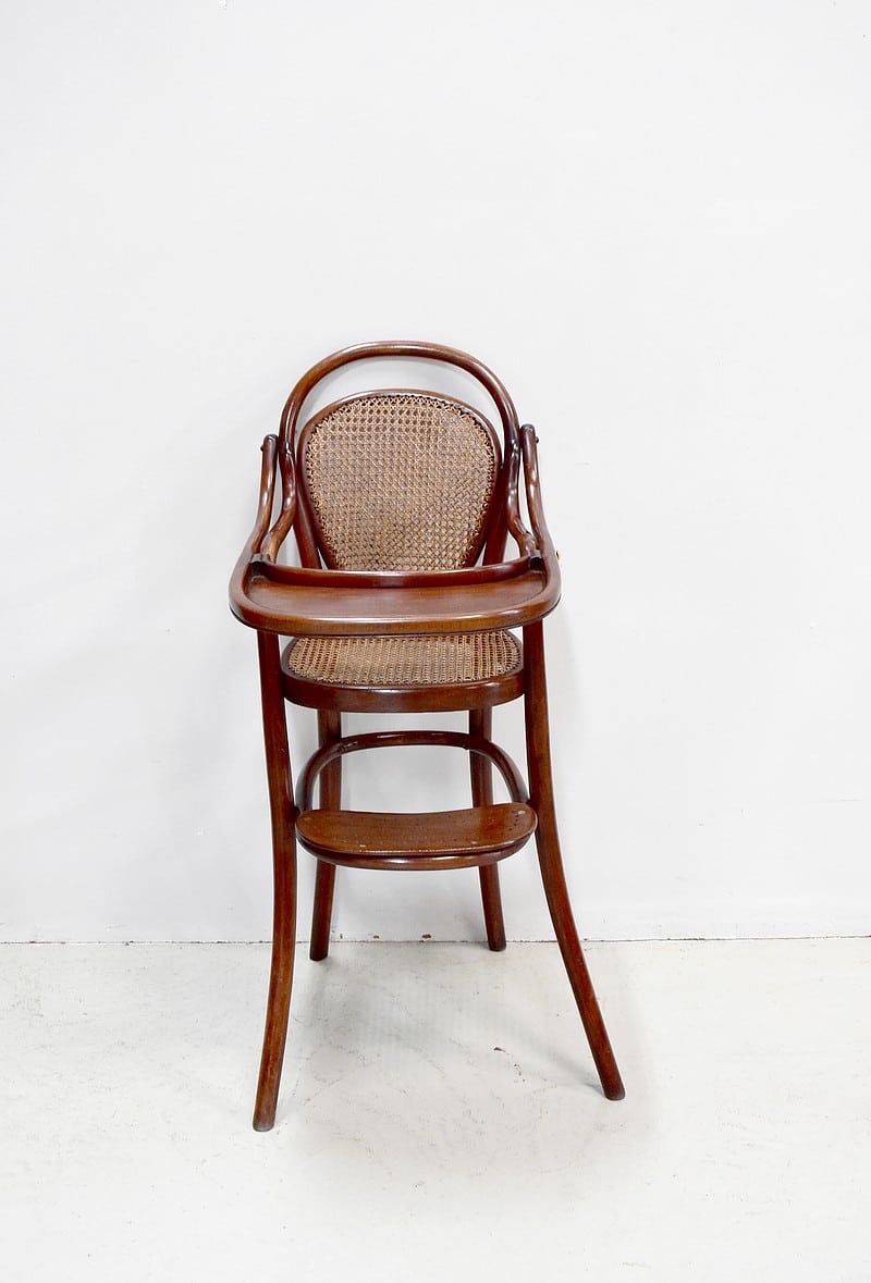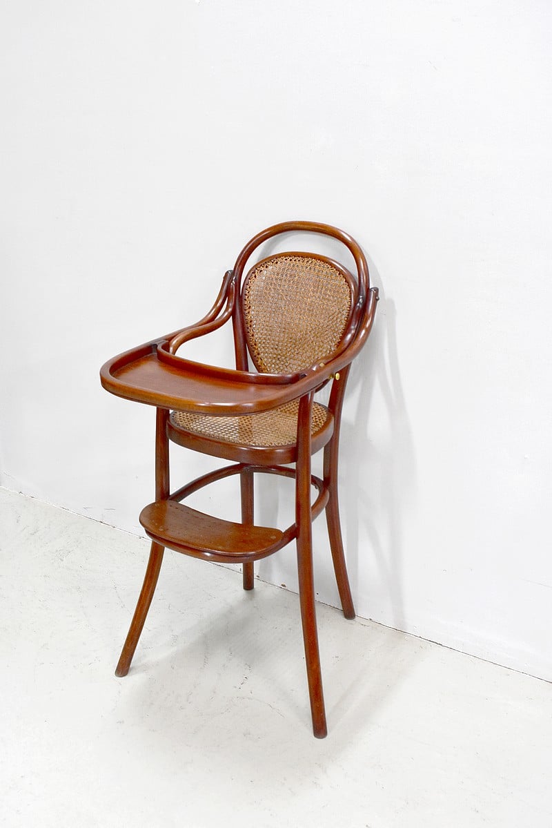 Chaise haute de bébé de marque Thonet en Hêtre courbé et teinté.