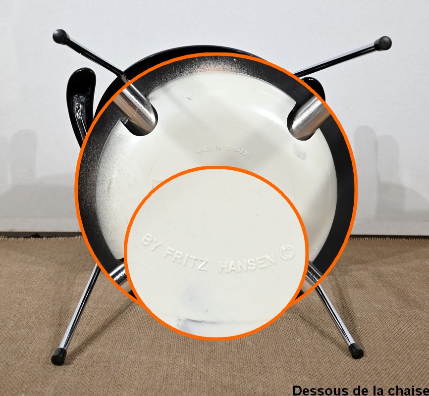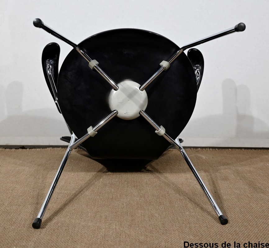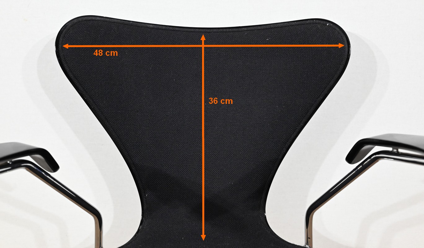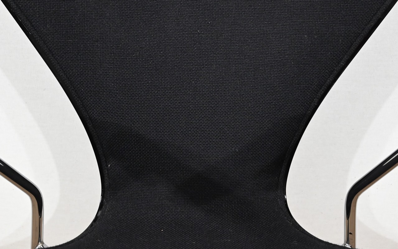 « La Série 7 » se compose d’une assise et d’un dossier, en contreplaqué moulé en une seule pièce, habillés d’un tissu noir.