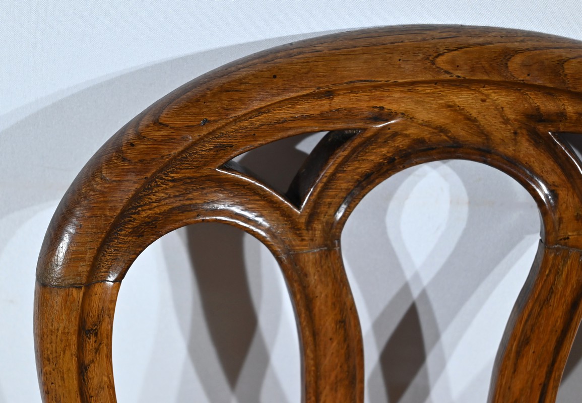 Les dossiers ajourés en raquette sont agrémentés d’éléments mouvementés à défoncement.