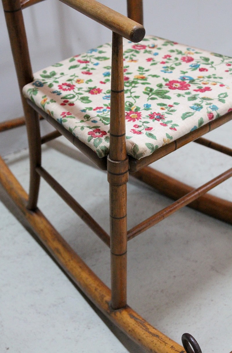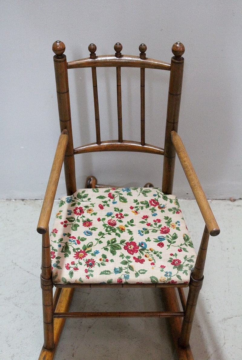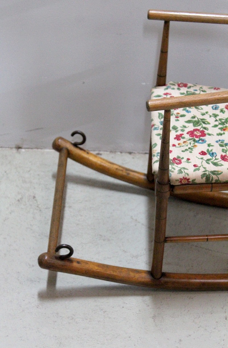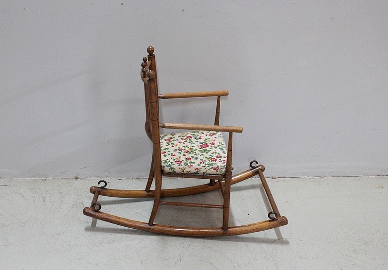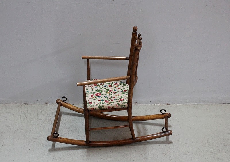 Fauteuil à bascule d’enfant en Hêtre teinté dans l’esprit Bambou.