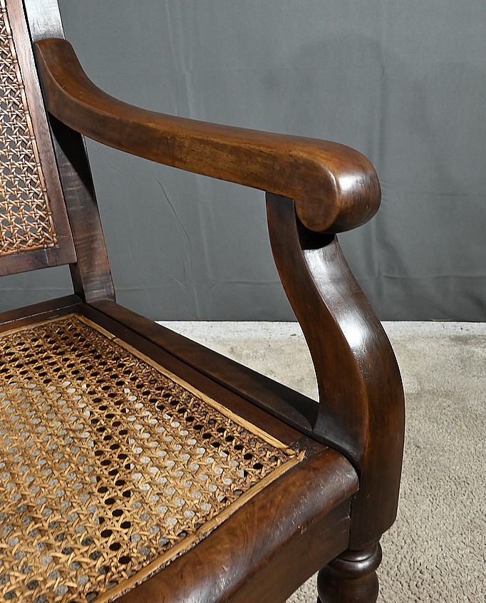 Ce siège possède une assise et un dossier cannés en excellent état. L’assise mouvementée en façade, est large, confortable et solide. Elle est également amovible.