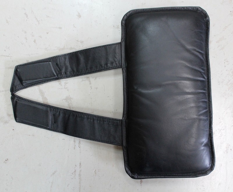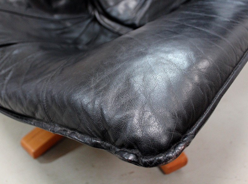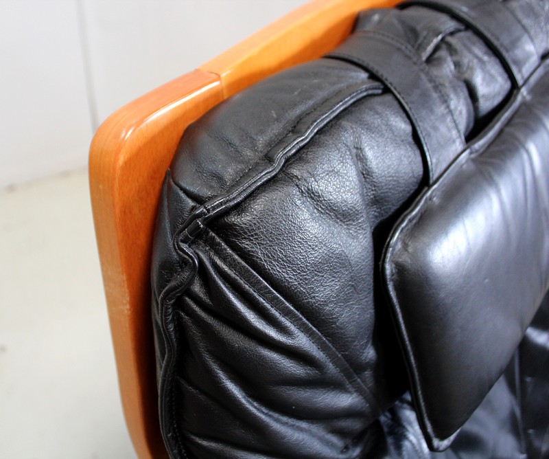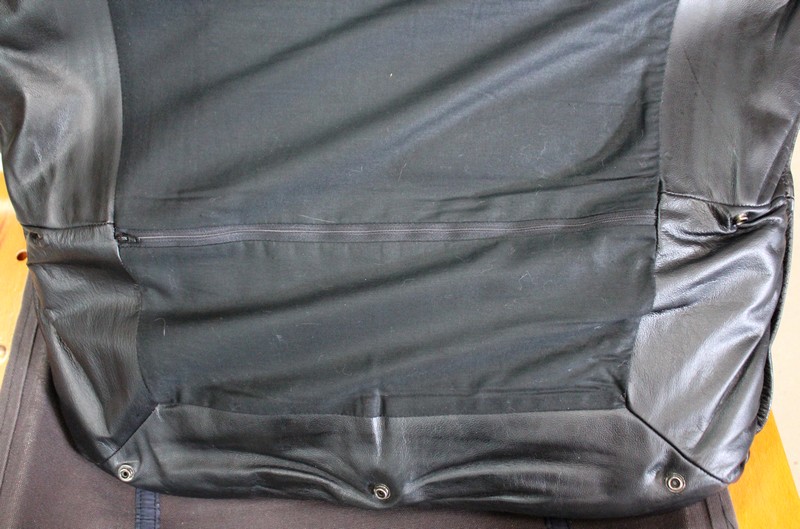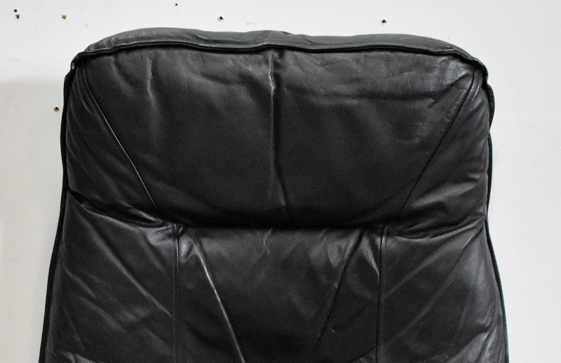 Il est garni d’un grand coussin Déhoussable, Rembourré et Moelleux. Ce dernier est recouvert d’un Cuir Véritable, Naturel, d’un Noir Profond et d’une Qualité Exceptionnelle, avec Piqures à point Sellier.