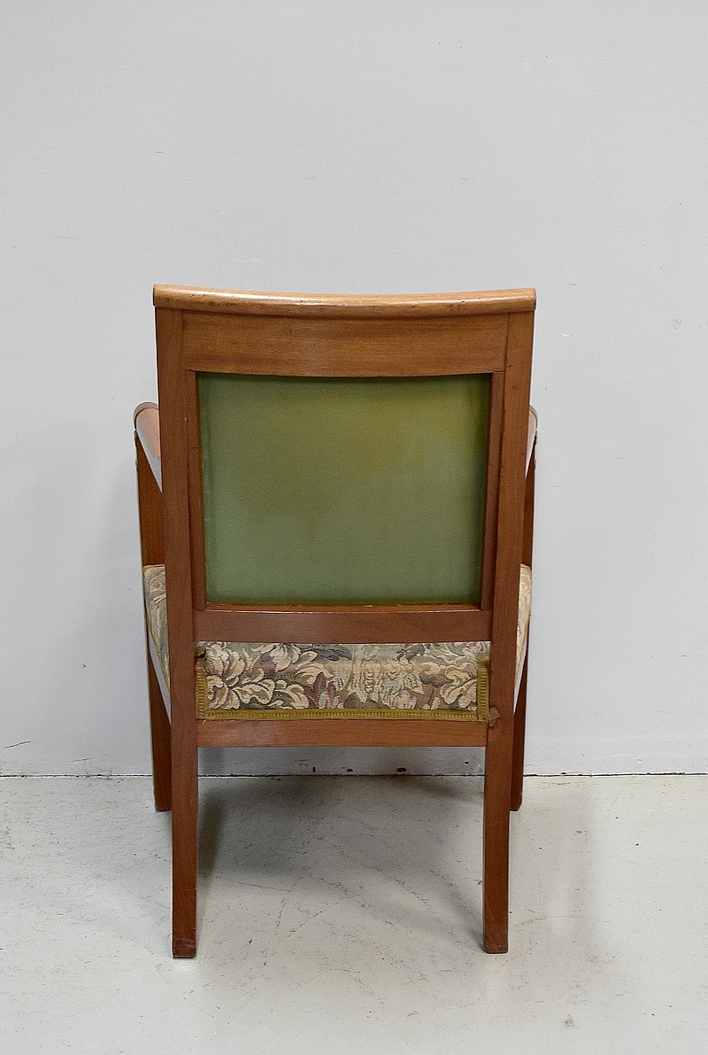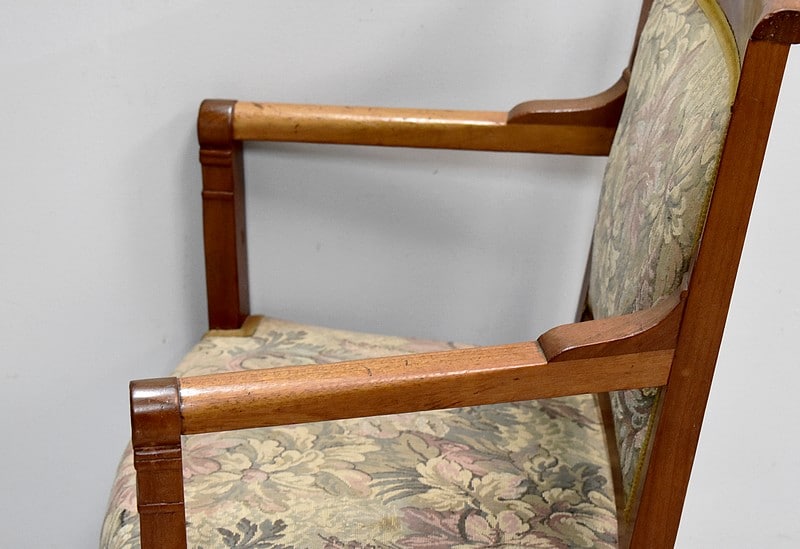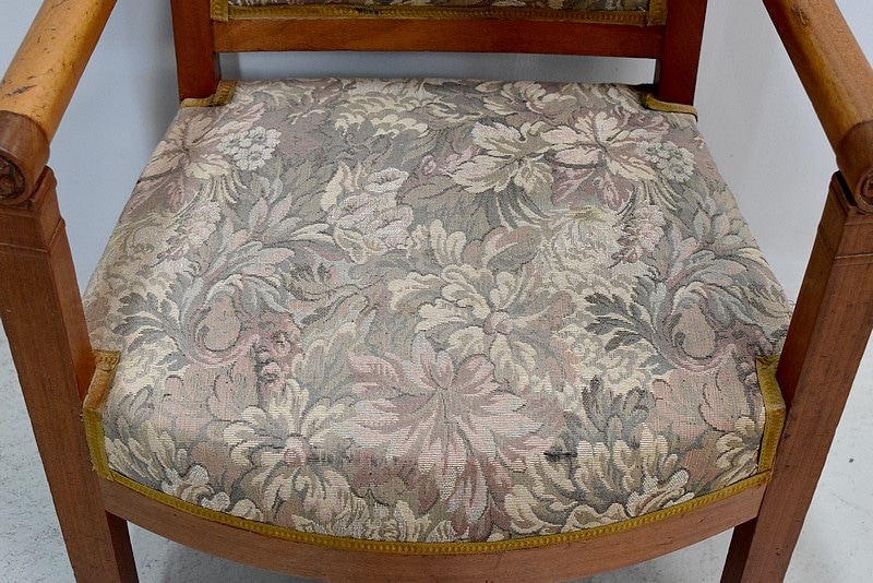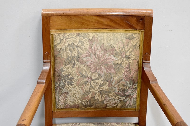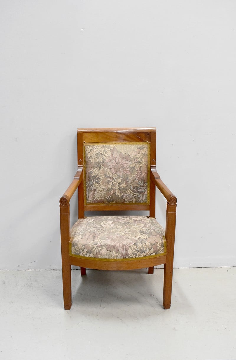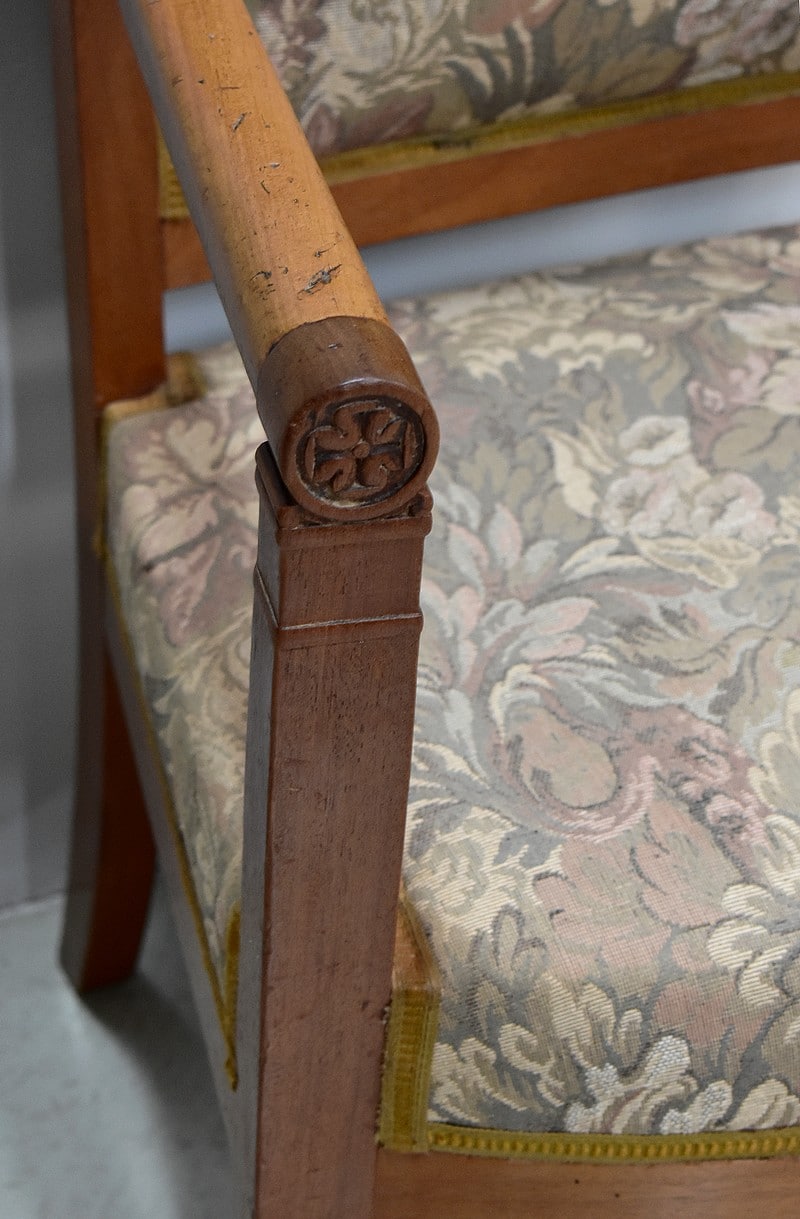 Fauteuil Empire à dossier carré en acajou blond massif.