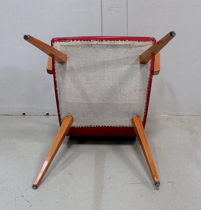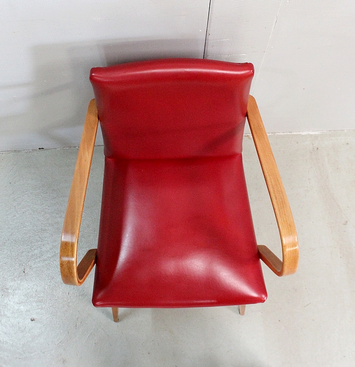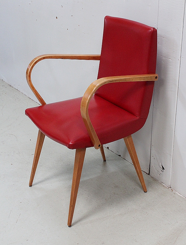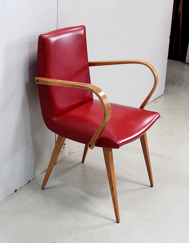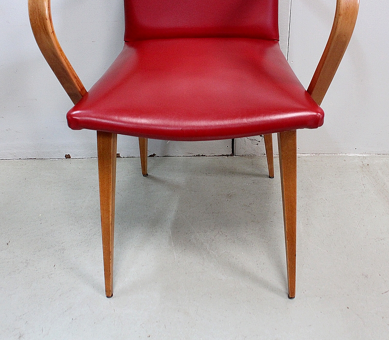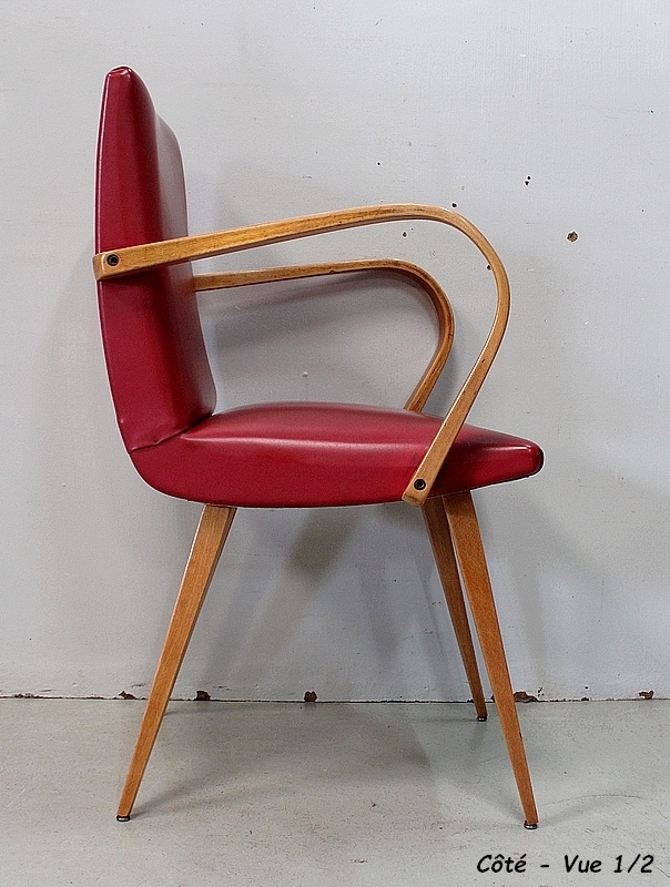 Fauteuil conçu dans le goût Baumann, dans les années 1950 / 1960, avec structure en Hêtre Naturel Clair.