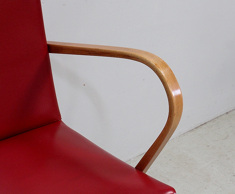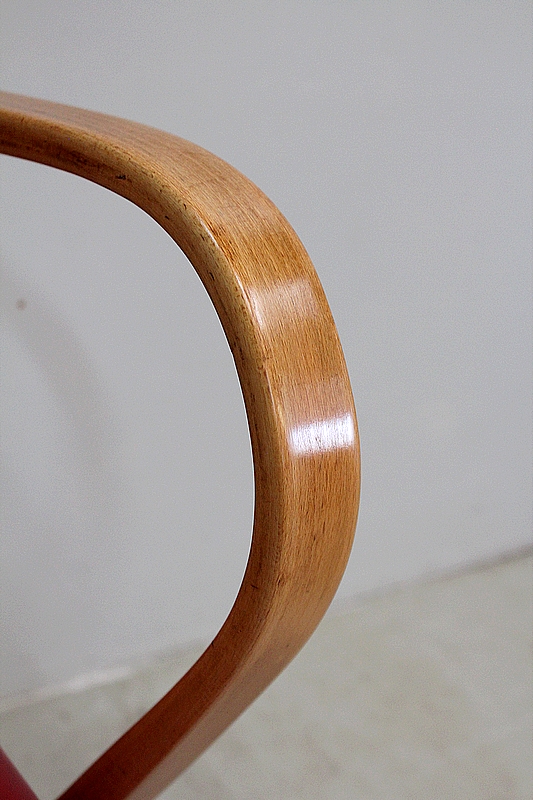 On notera la relative rareté de l’ossature de ce fauteuil aérien, constitué de Hêtre Naturel Clair. On appréciera tout particulièrement sa silhouette avant-gardiste et épurée, ainsi que la note colorée qu’il apportera à un intérieur qui sera déjà dans l’esprit moderniste ou scandinave.