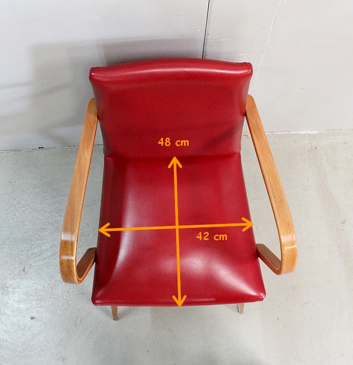 Ce siège s’habille d’un très joli cuir artificiel d’origine, de couleur rouge Cherry.
