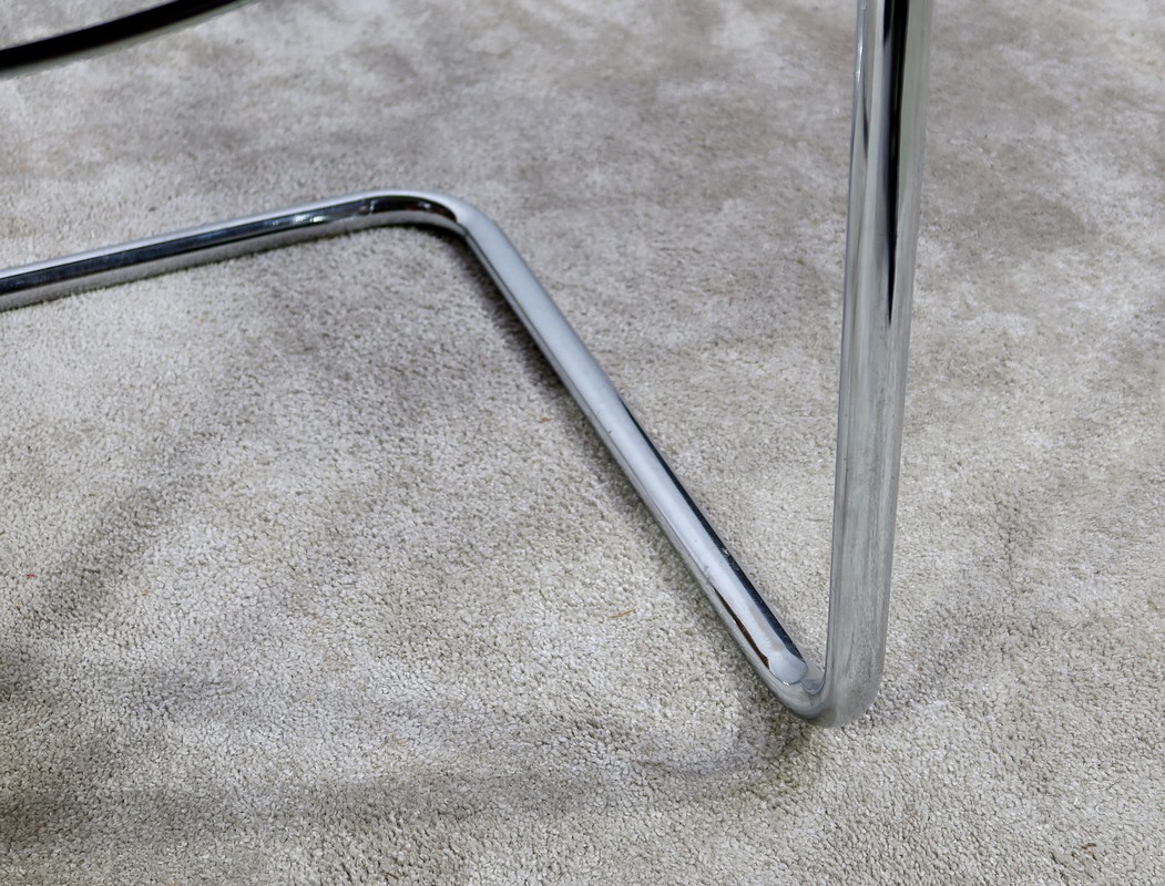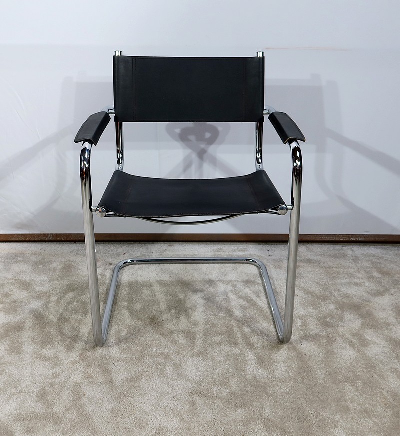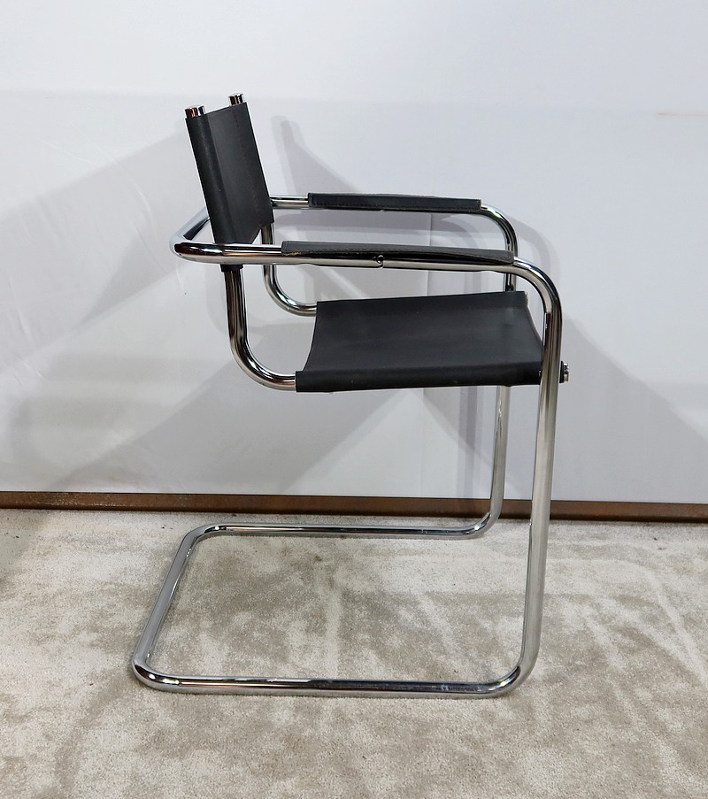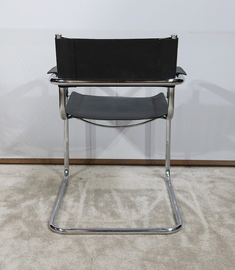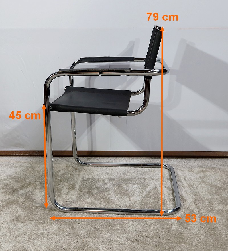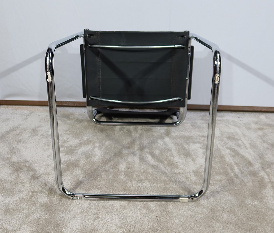 Fauteuil noir en cuir reprenant le modèle B34 de Marcel Breuer édité dans les années 1930.