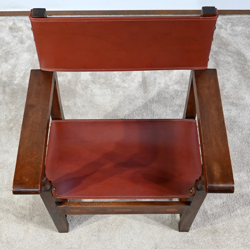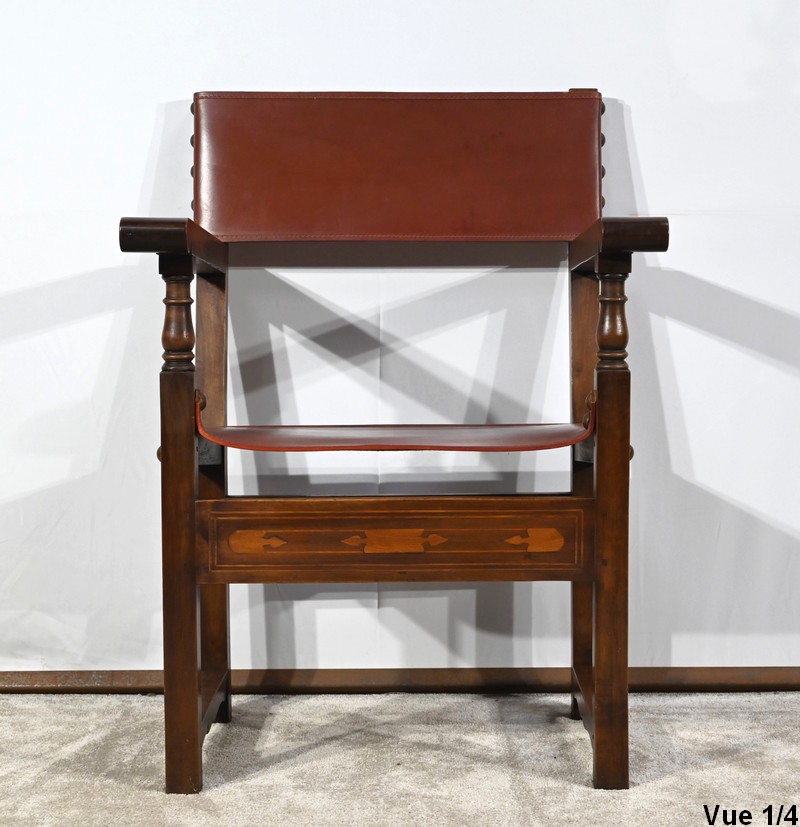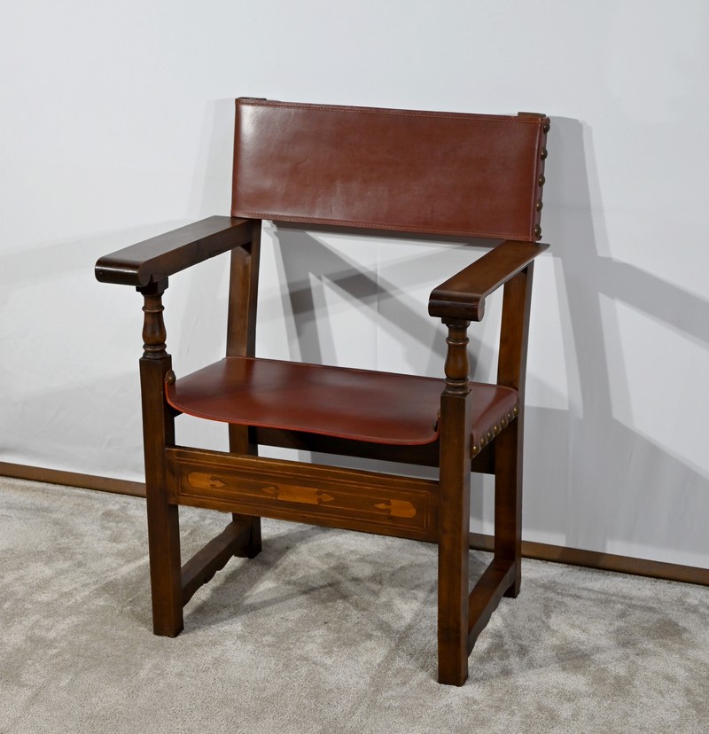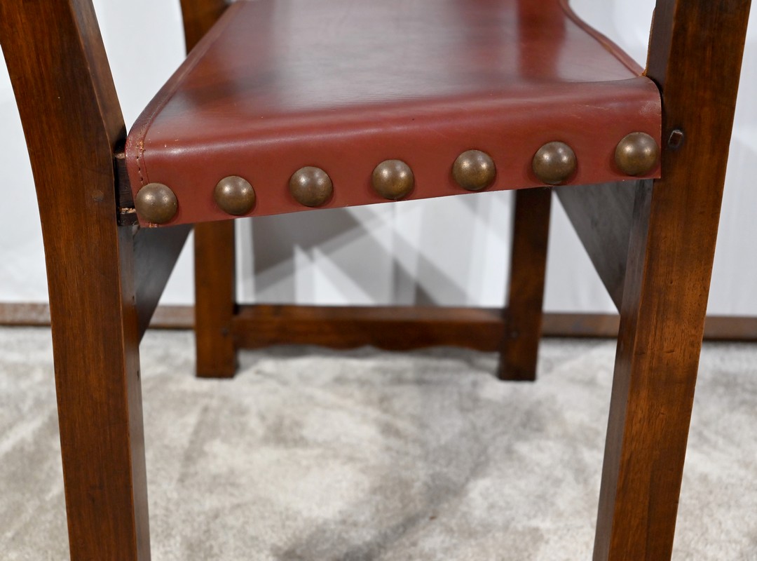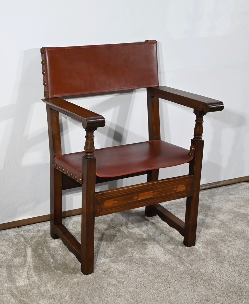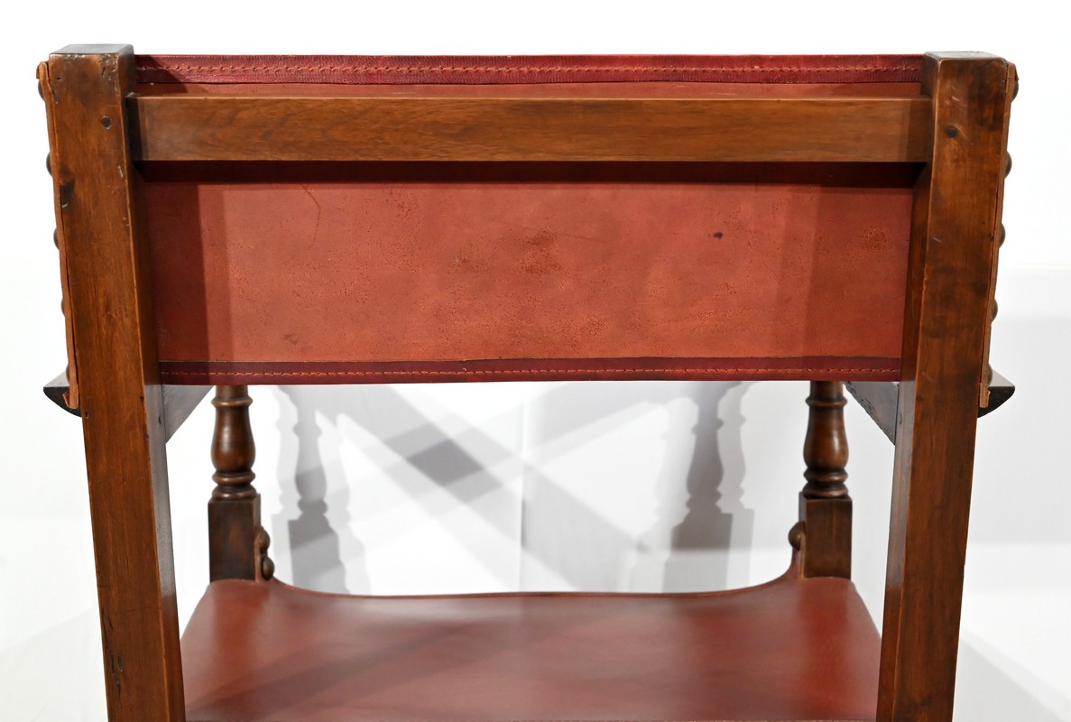 Fauteuil en Noyer et Cuir de Cordoue – Fin XIXe