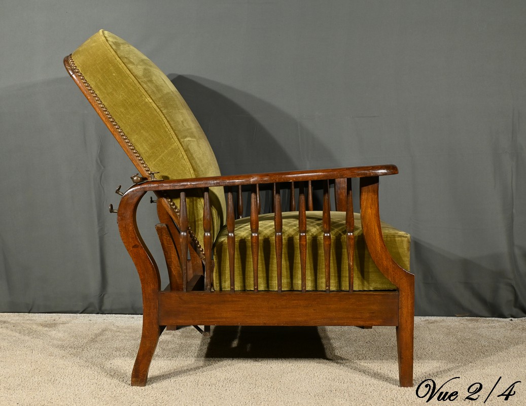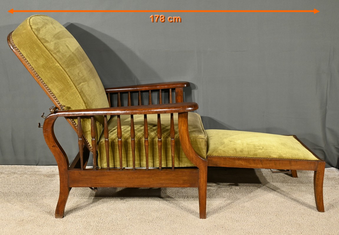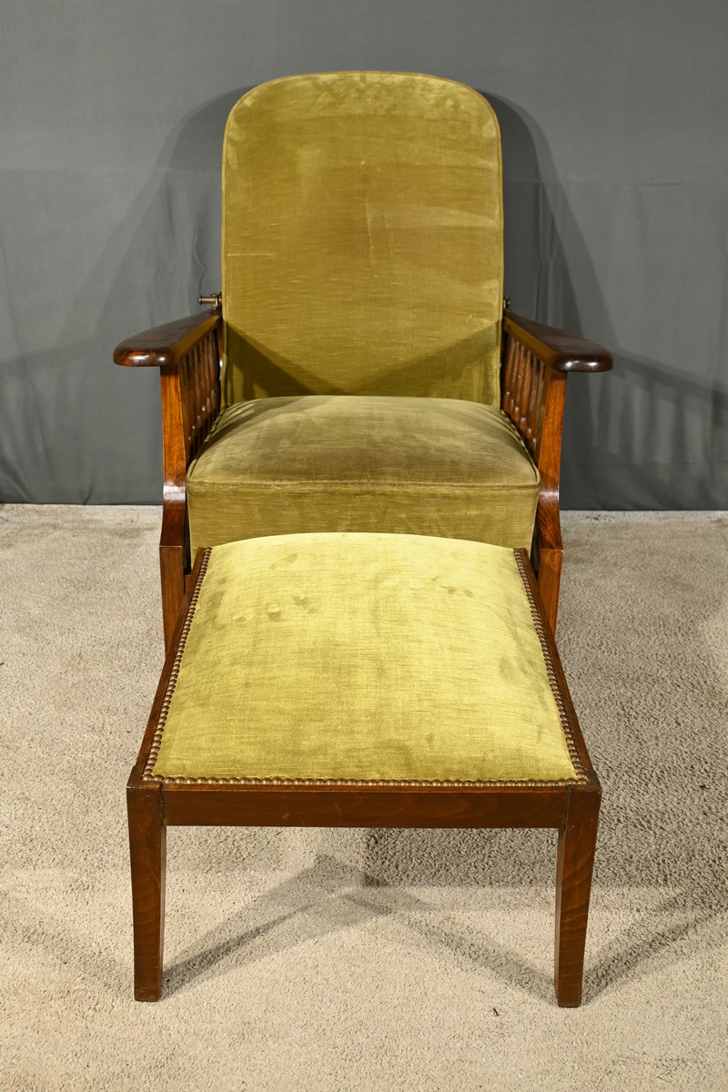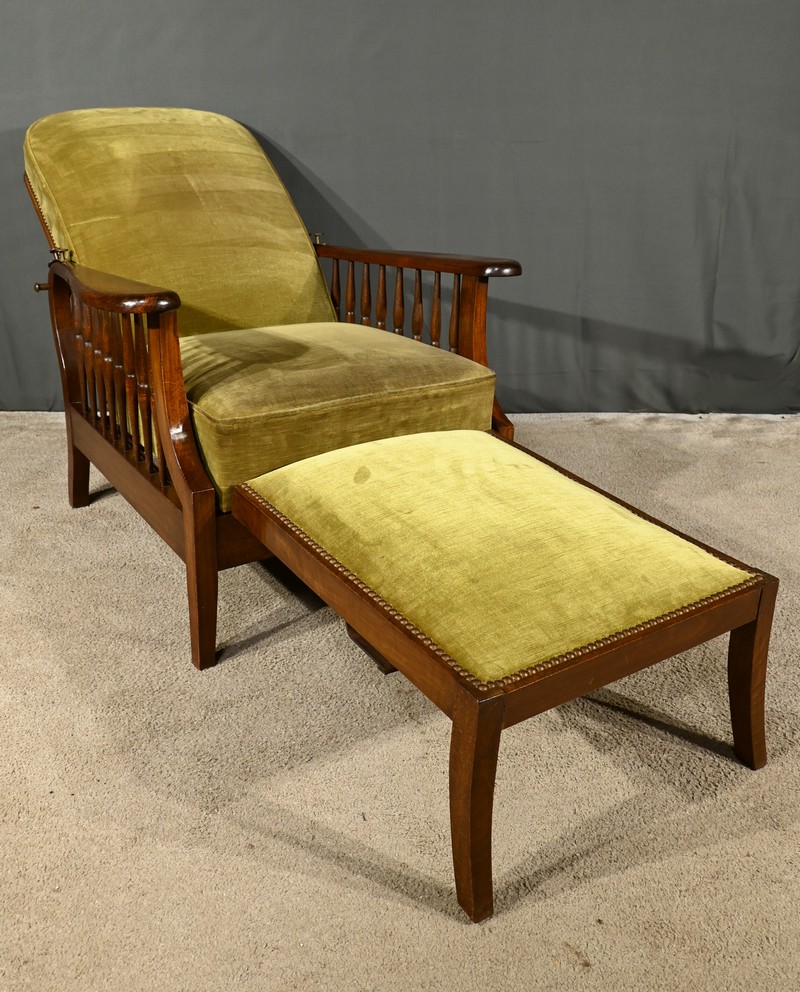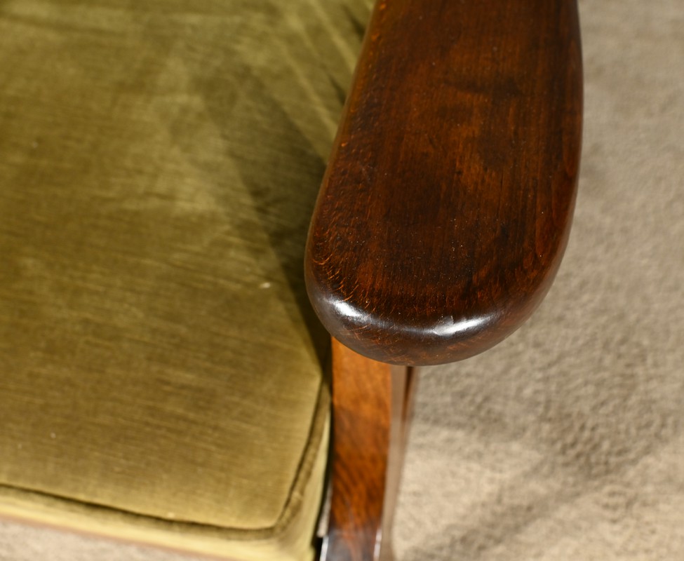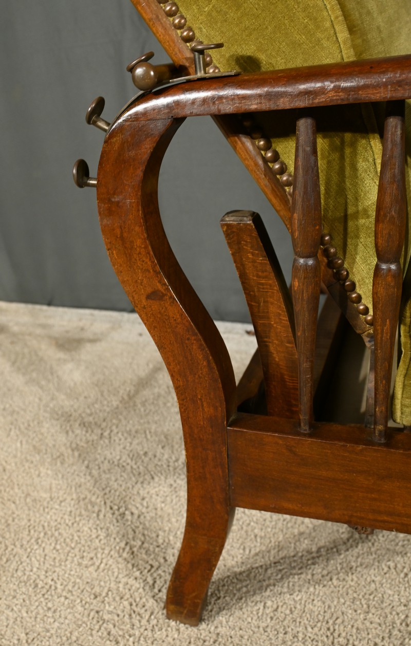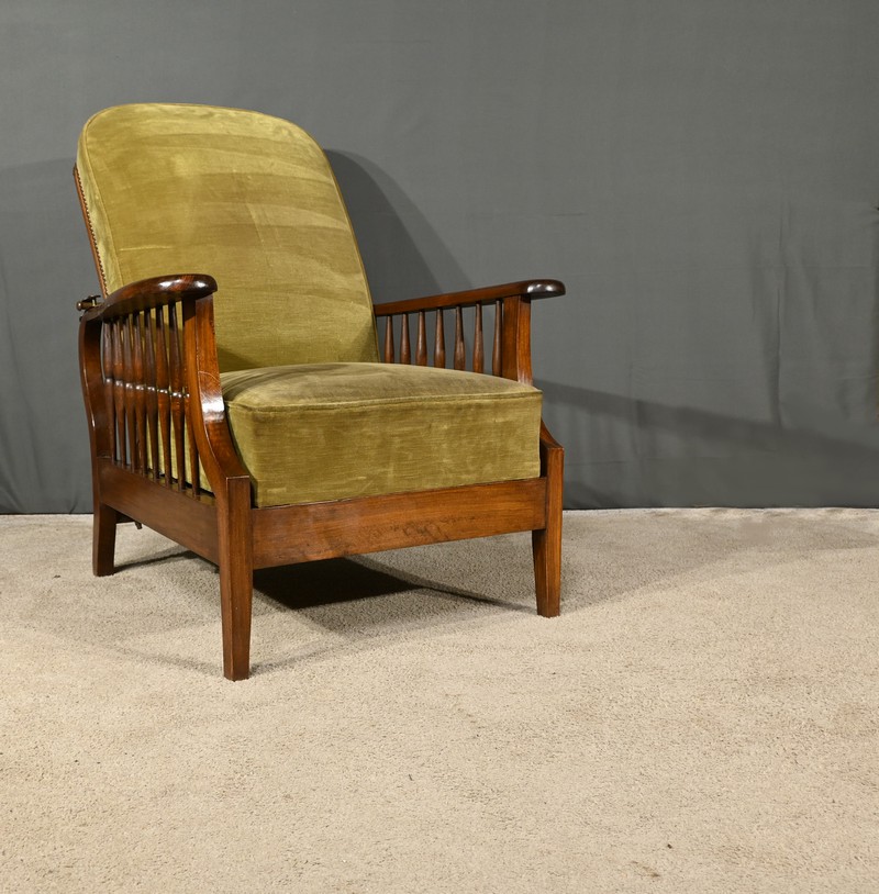 Le fauteuil Morris en hêtre teinté des années 1920 est une pièce emblématique de l’époque art & craft, originaire d’Angleterre.