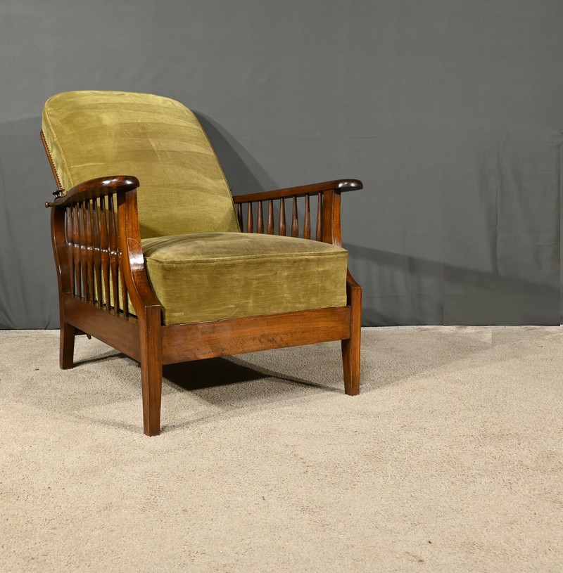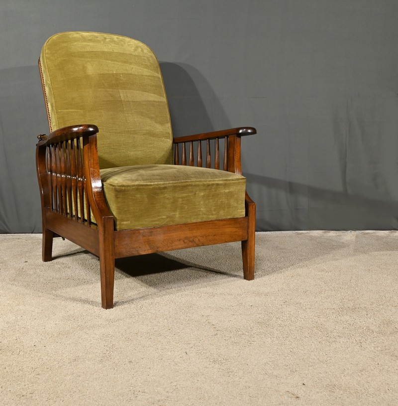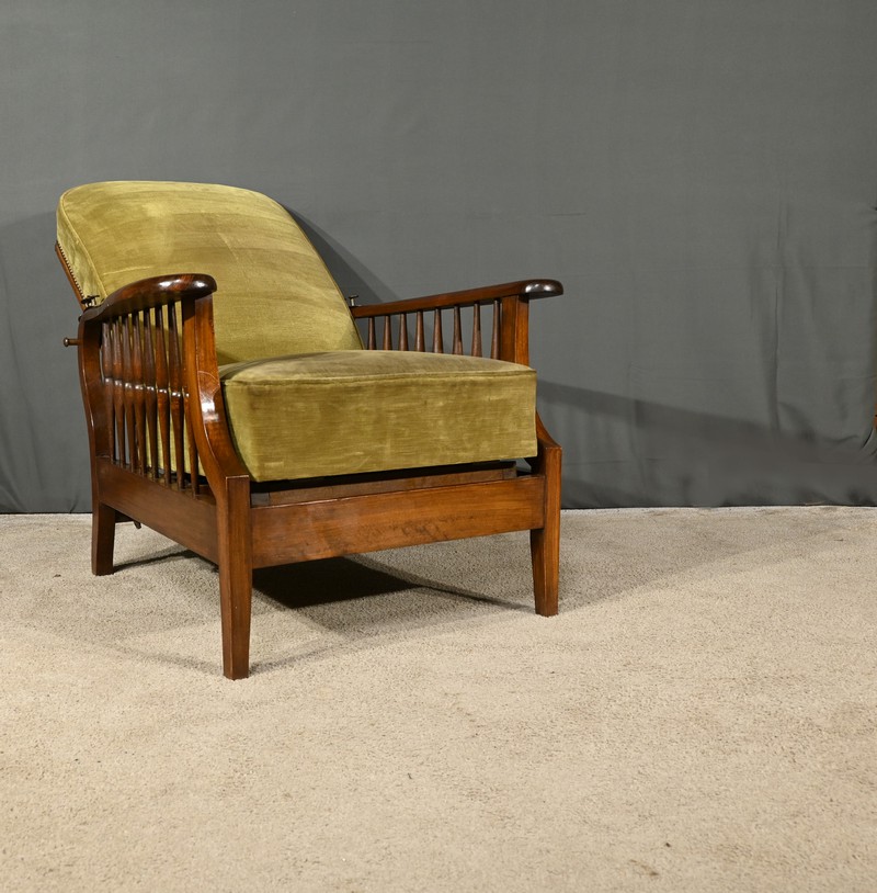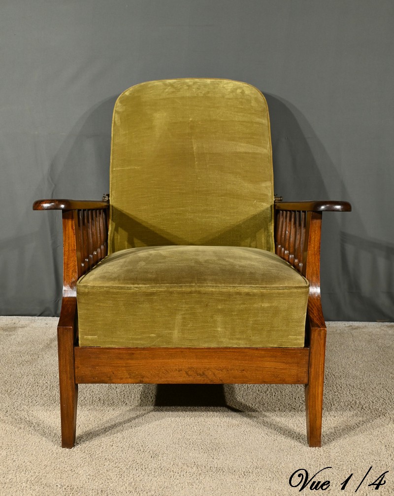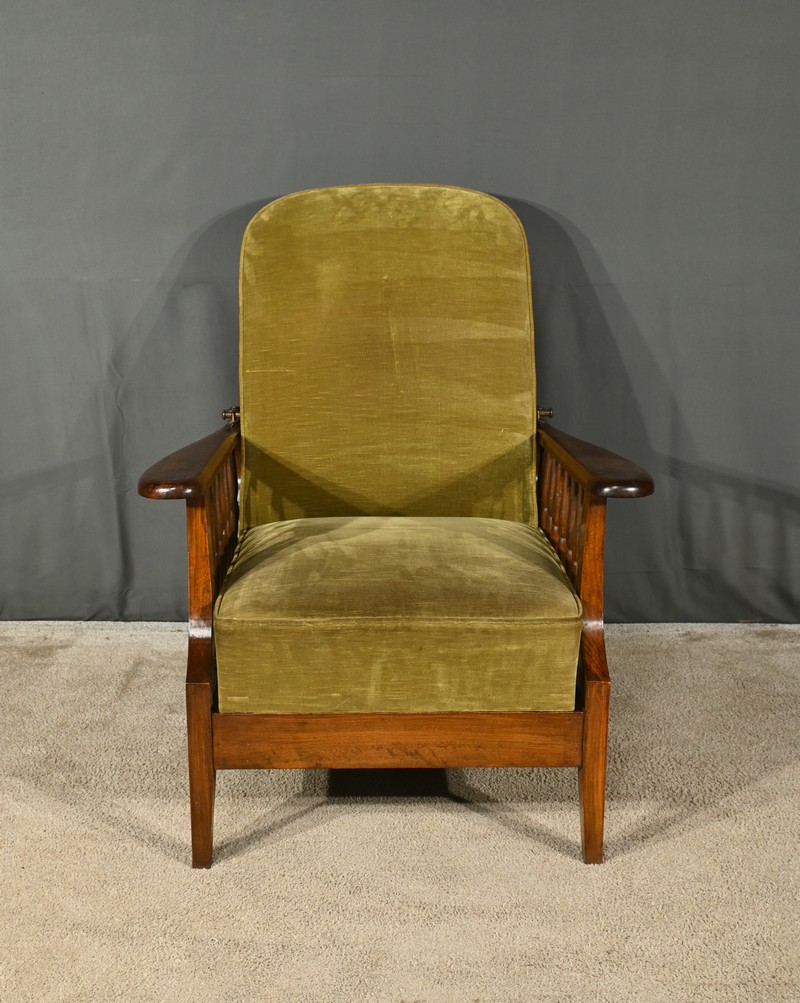 Ce fauteuil, au design raffiné et fonctionnel, incarne parfaitement l’esprit du mouvement initié par William Morris (1834-1896), écrivain, poète et architecte, dont les œuvres ont profondément influencé l’art nouveau et l’art déco.