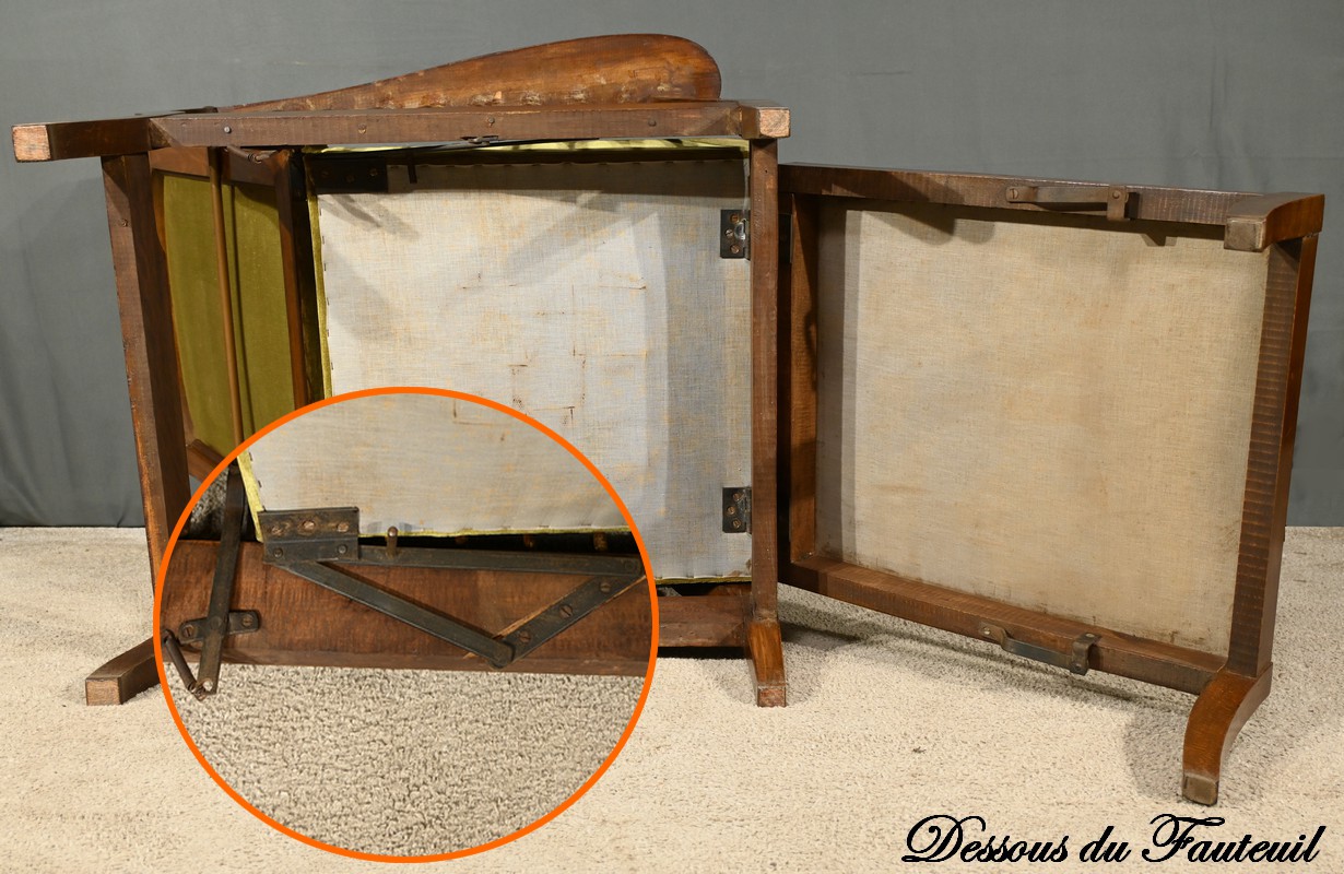 Le dossier du fauteuil est inclinable en quatre positions grâce à un système à crémaillère ingénieux.