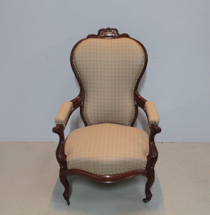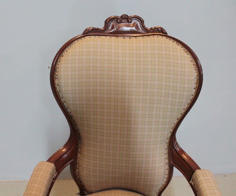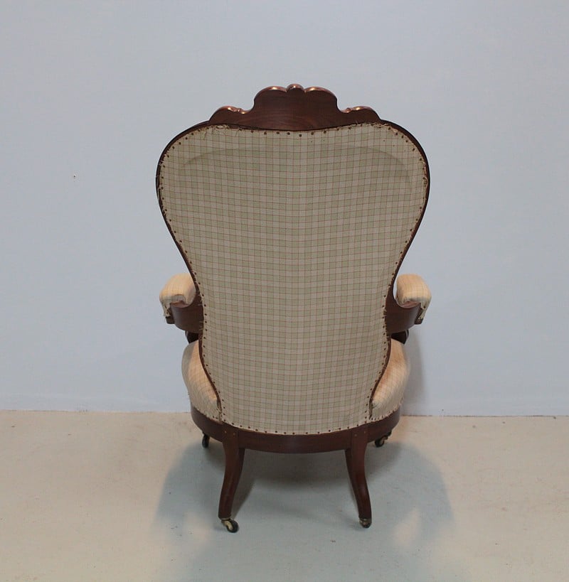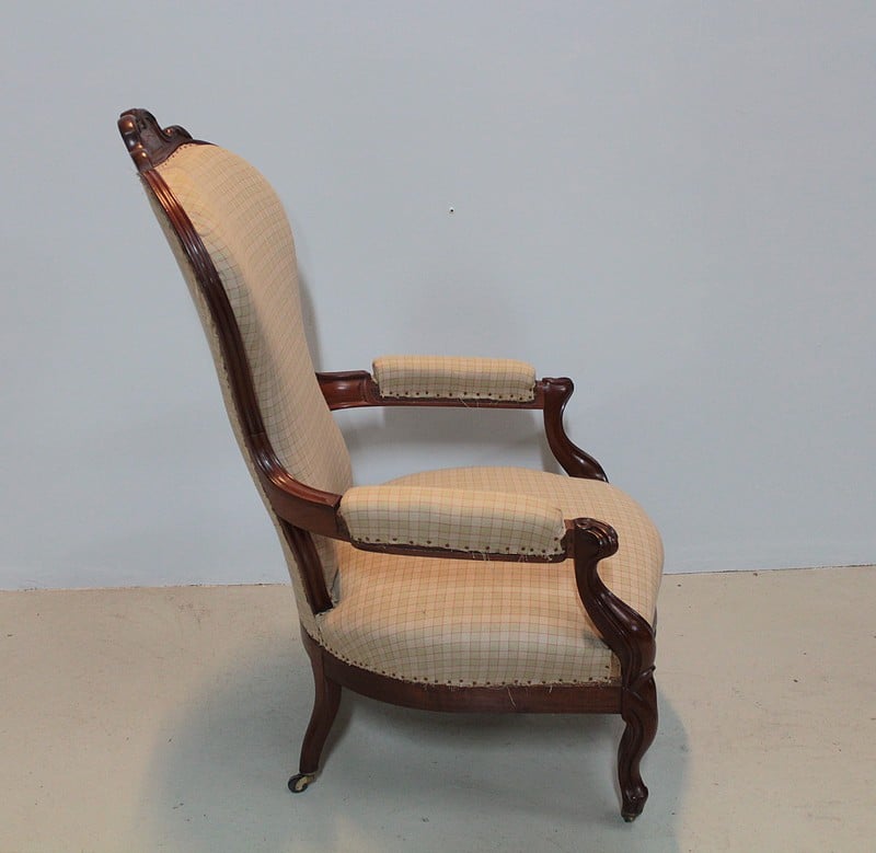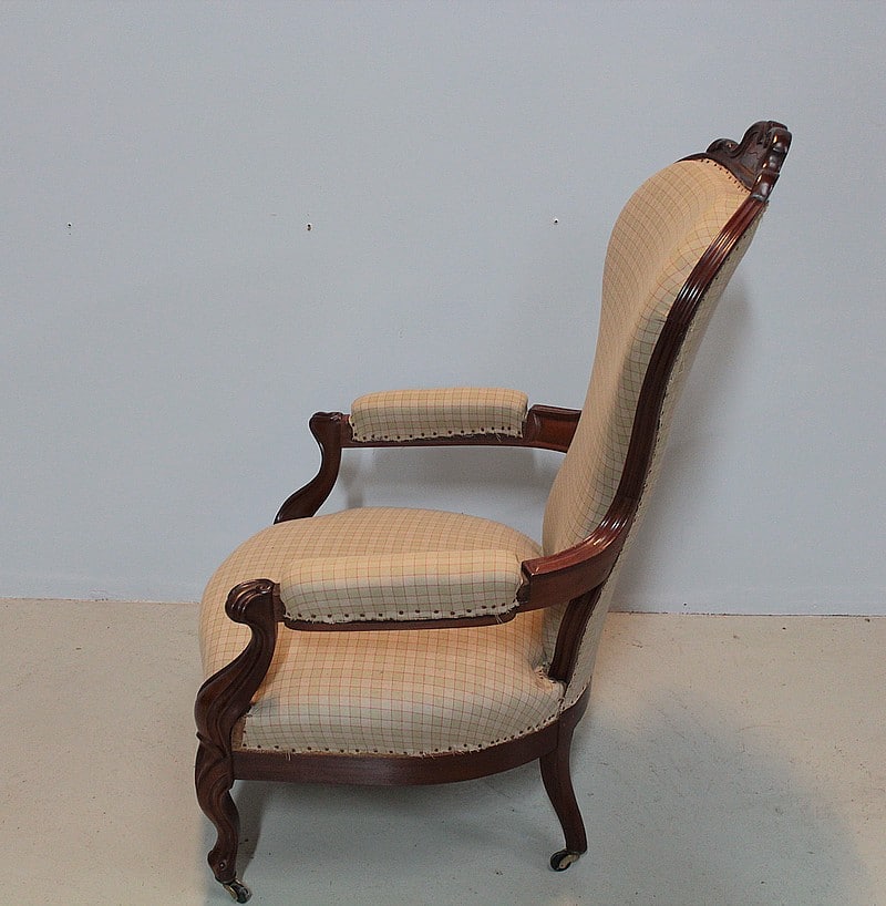 Grand Fauteuil d’Évêque de style Louis XV, époque NAPOLÉON III, en Acajou de Cuba.