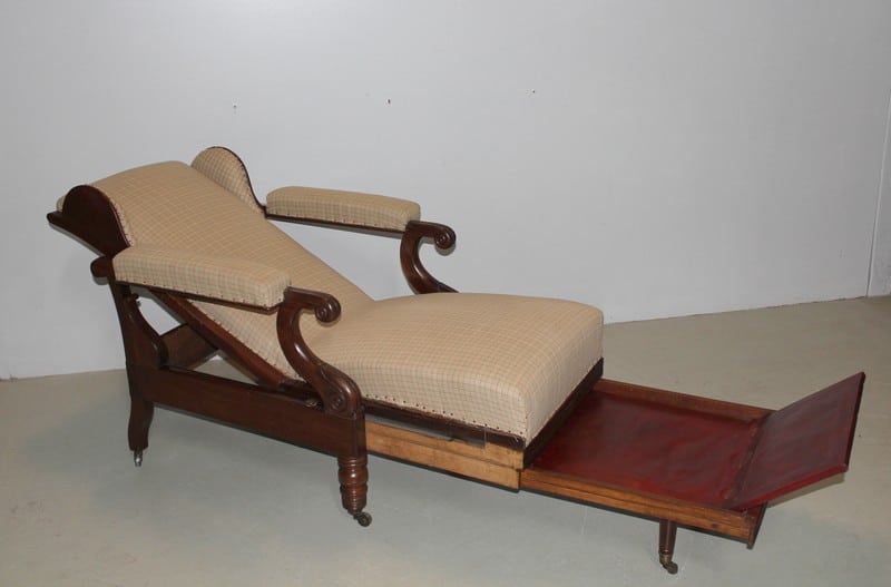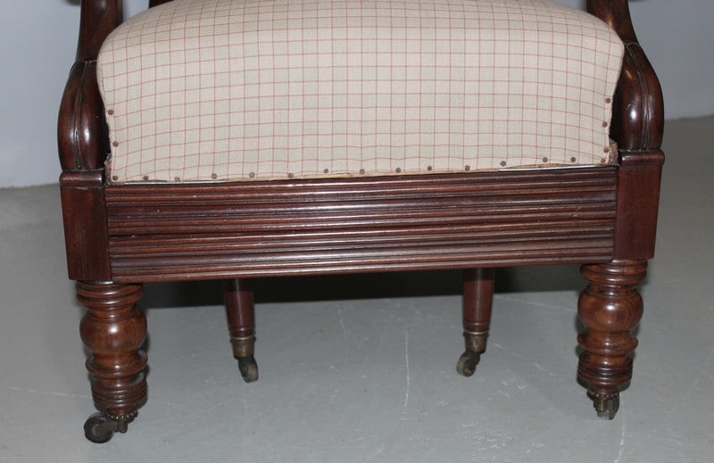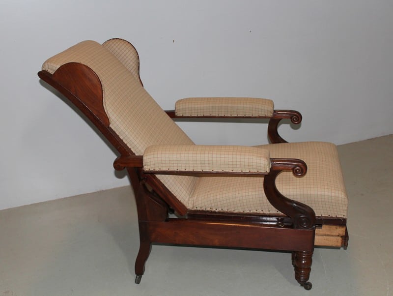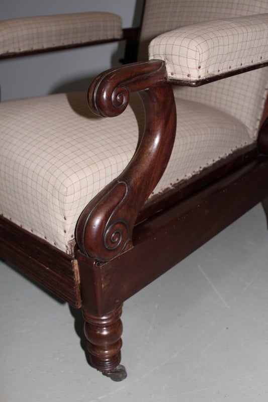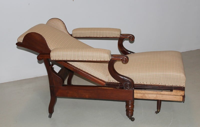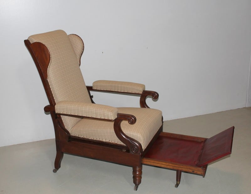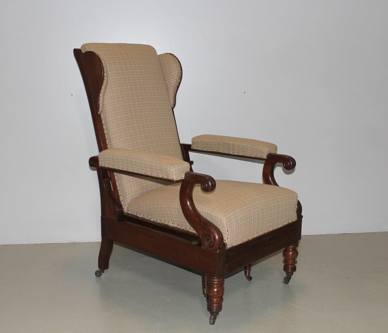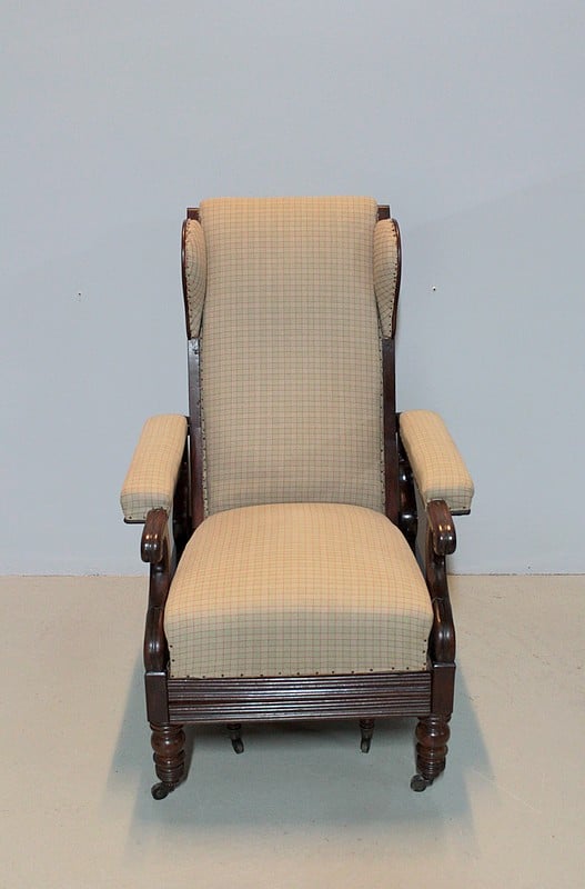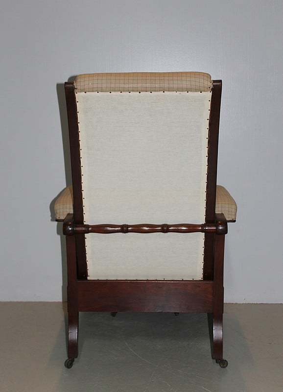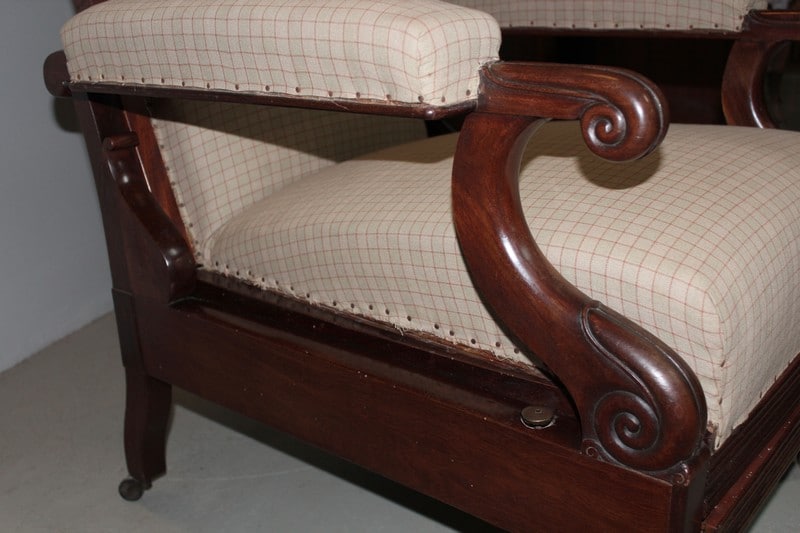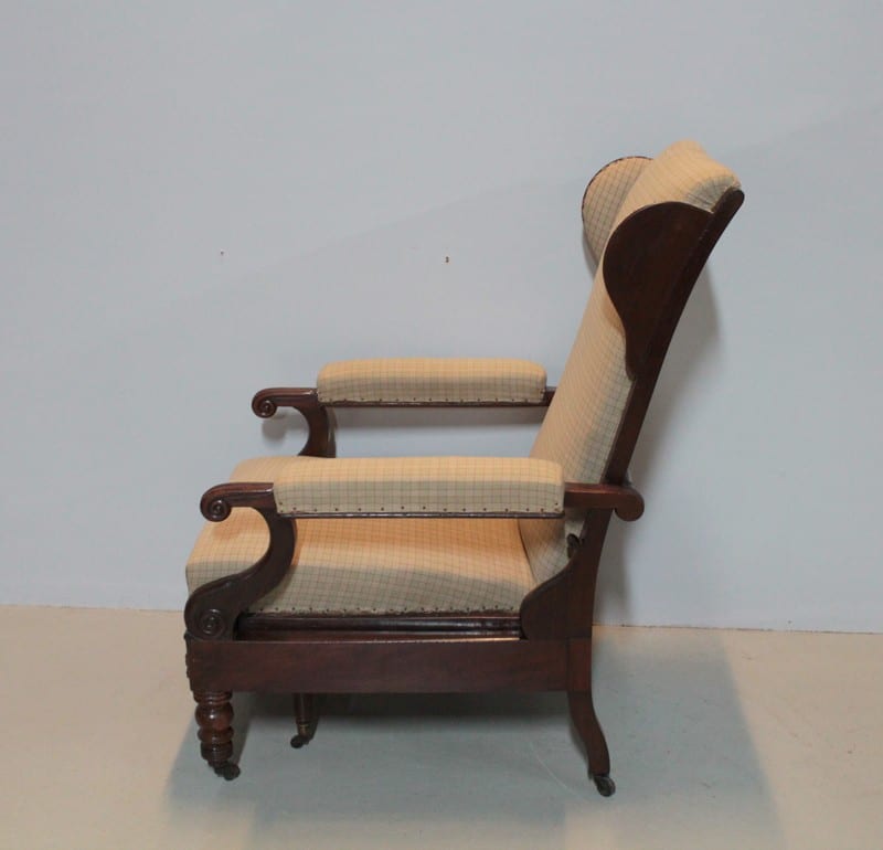 Fauteuil de repos Restauration en acajou de Cuba massif, à oreillettes, et à système..