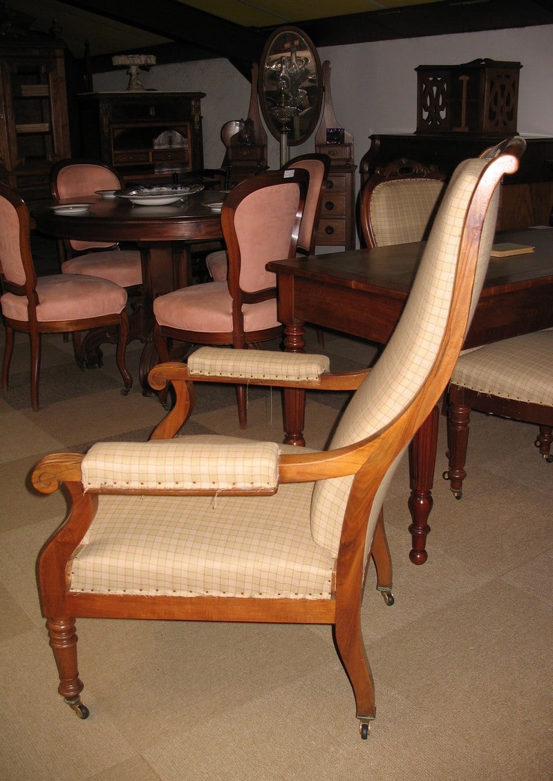 Depuis 50 ans, chaque pièce de mobilier est minutieusement restaurée avec passion dans notre atelier d’ébénisterie.