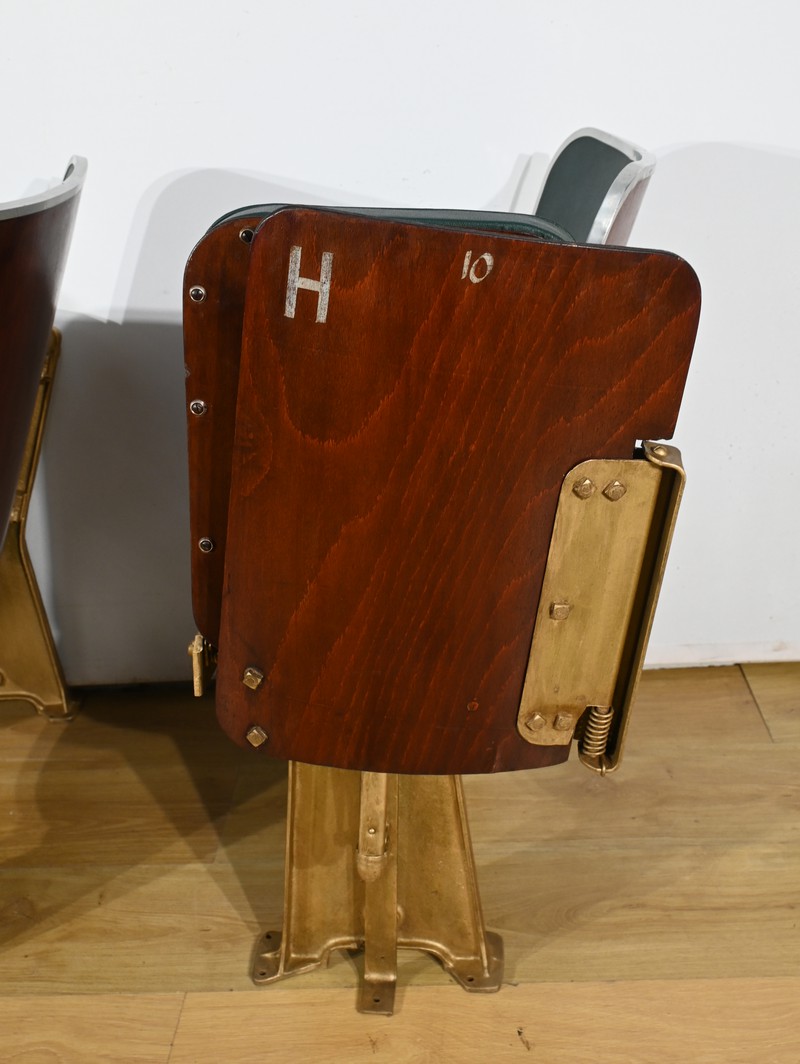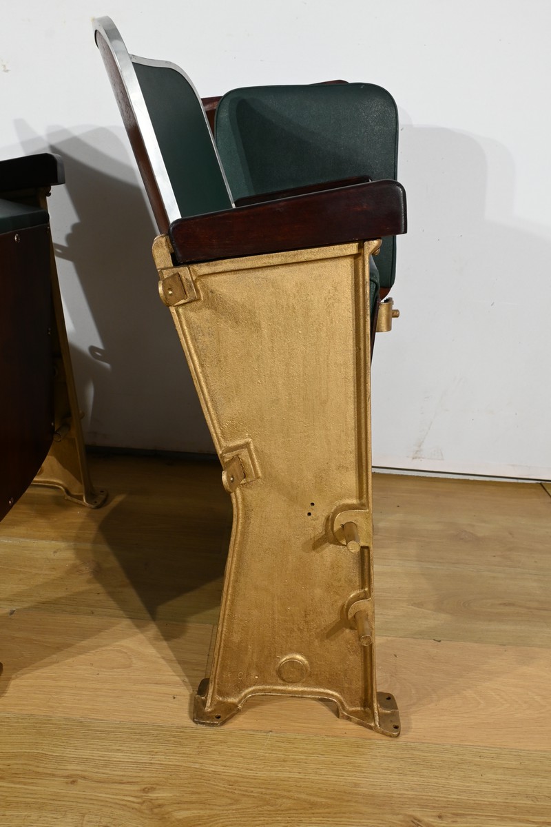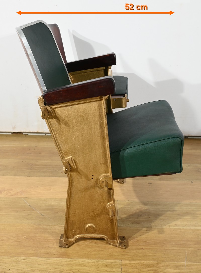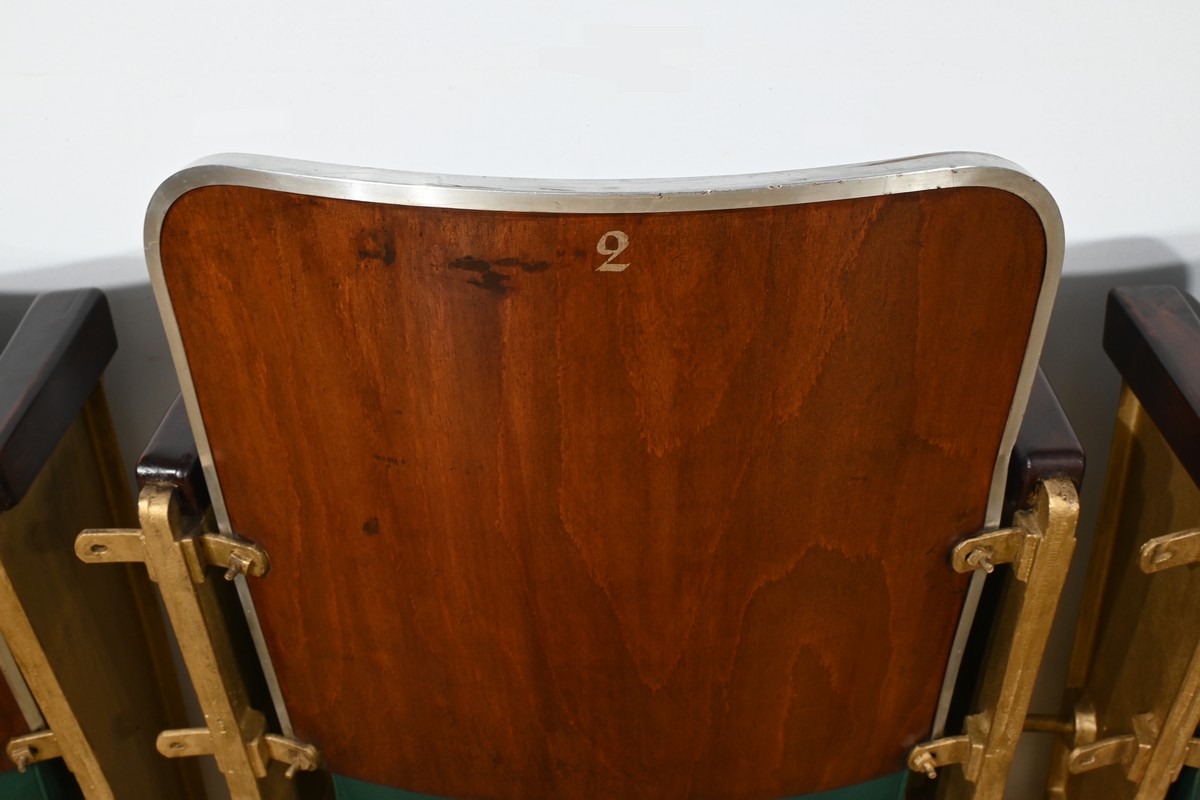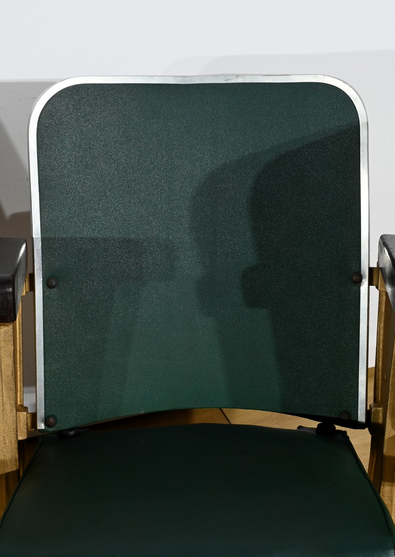 Fauteuils de Cinéma en Simili-Cuir et Acajou – 1950