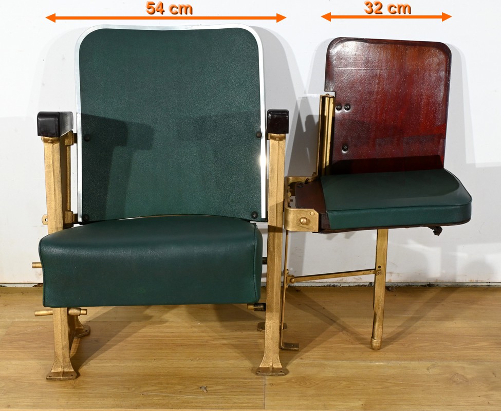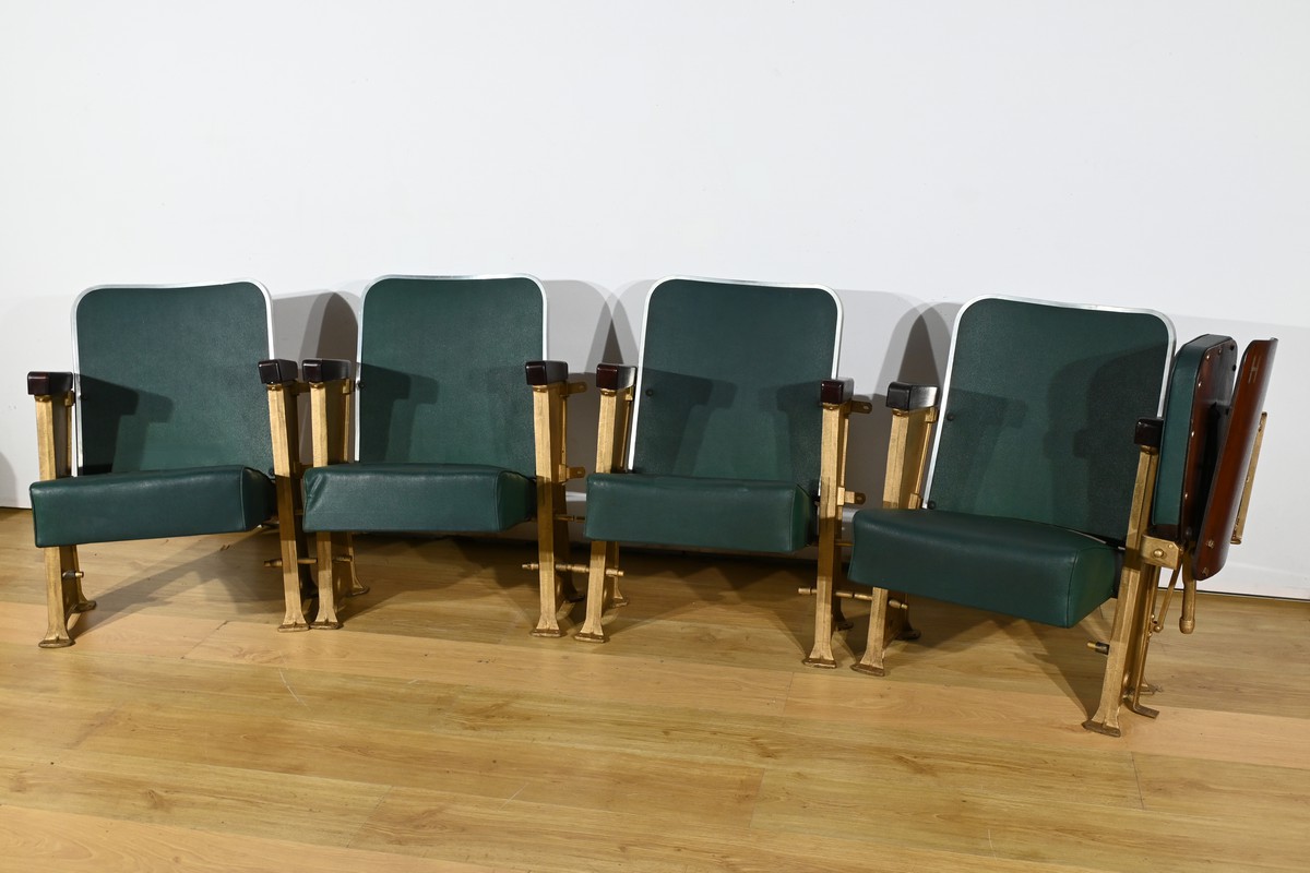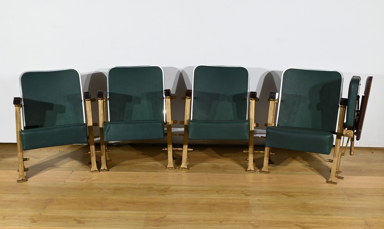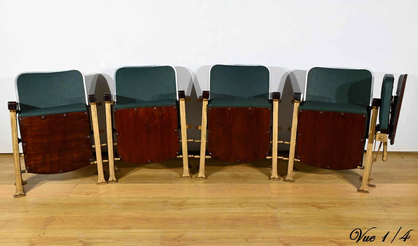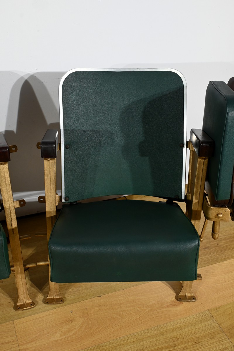 Fauteuils de Cinéma en Simili-Cuir et Acajou – 1950