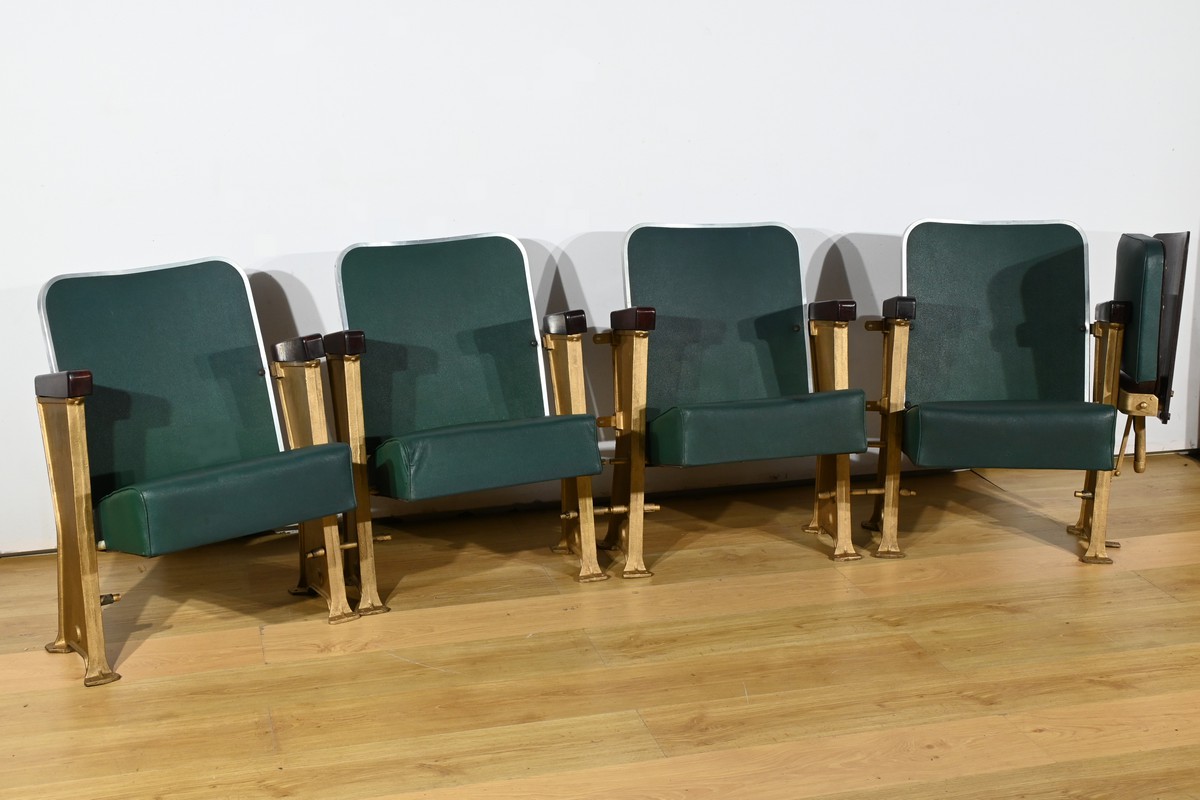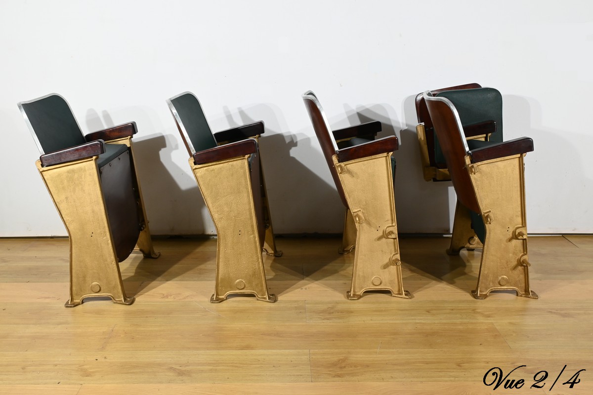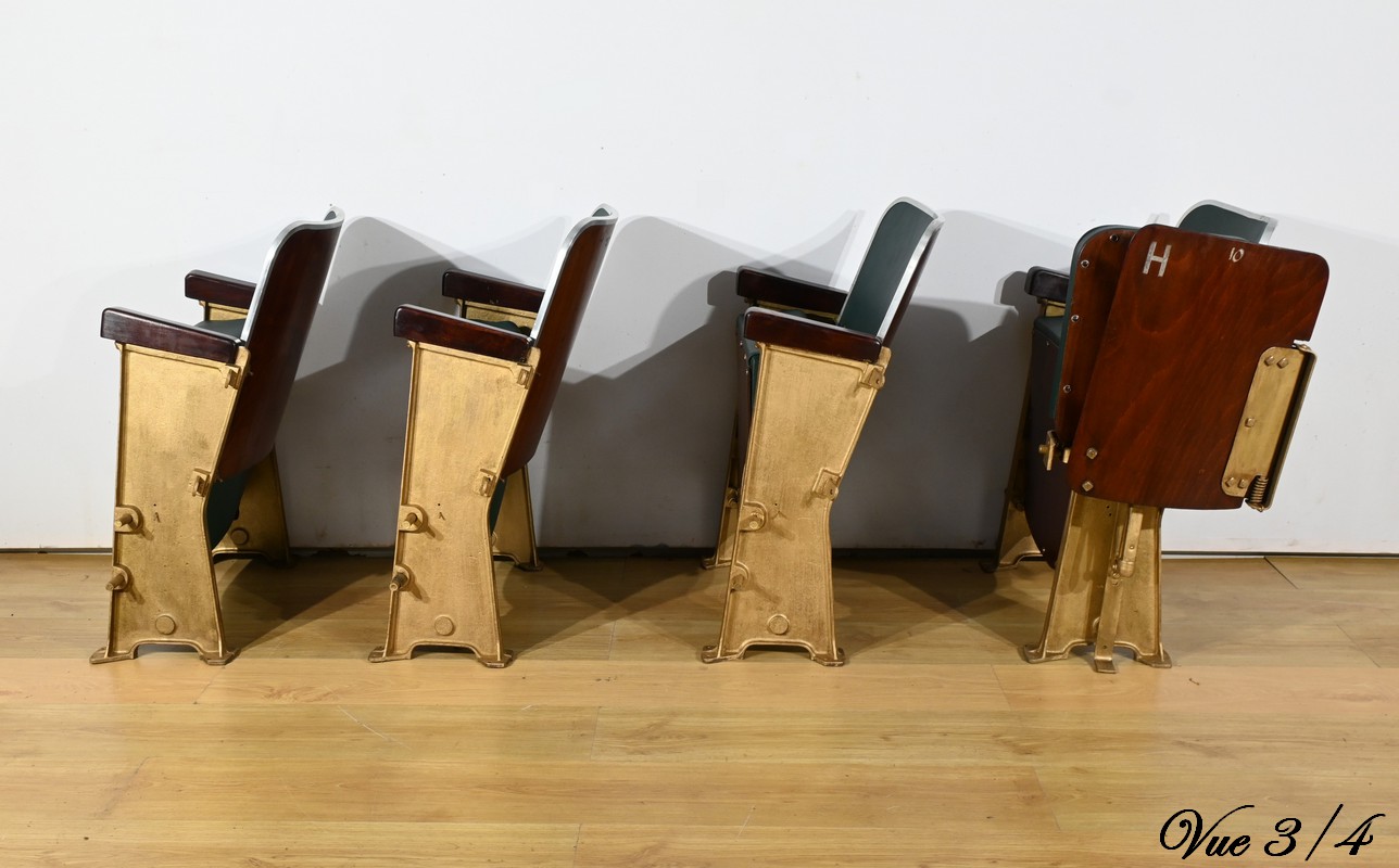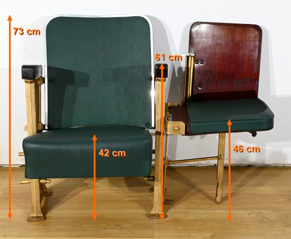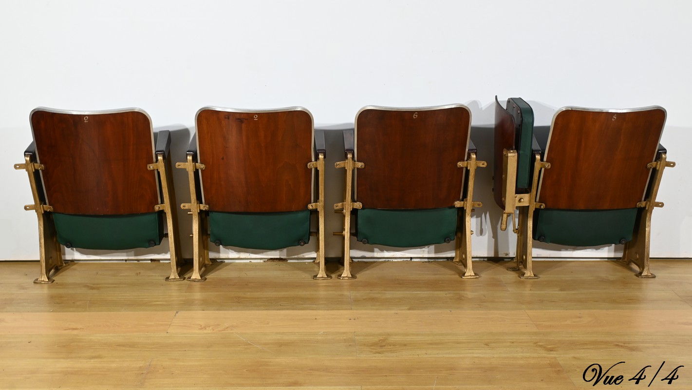 Fauteuils de Cinéma en Simili-Cuir et Acajou – 1950