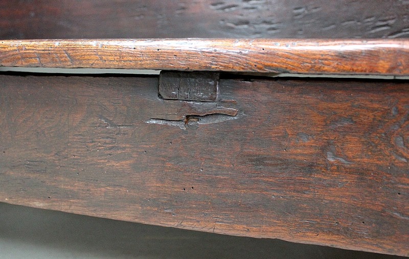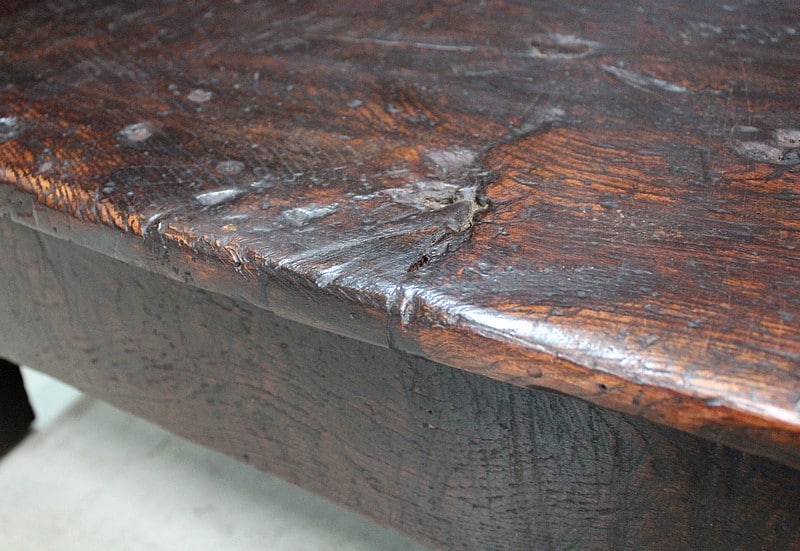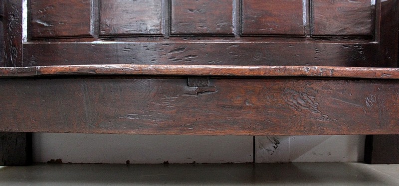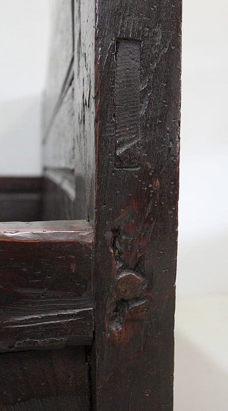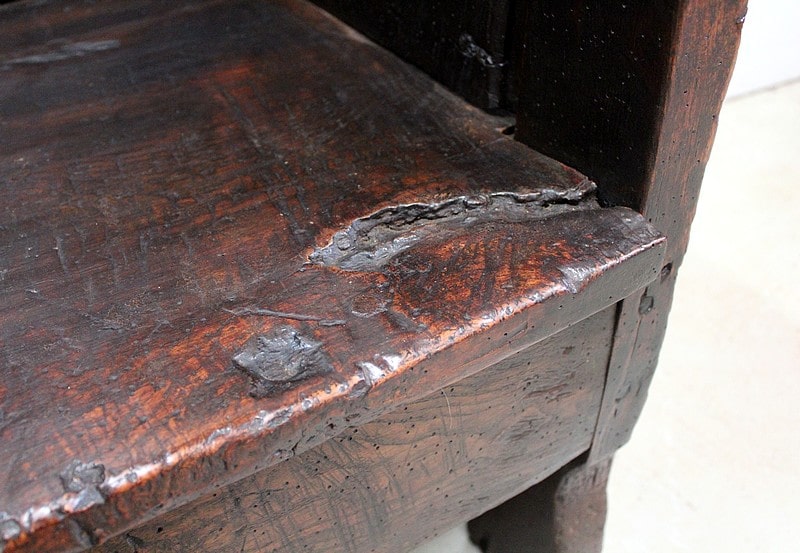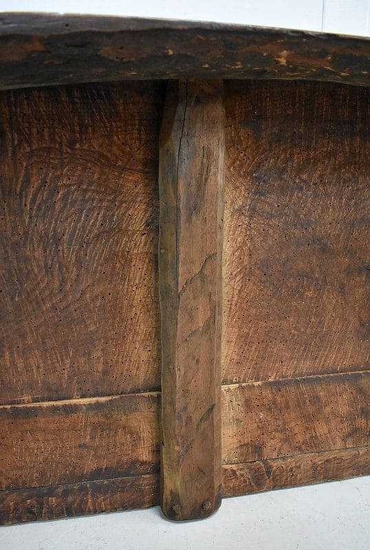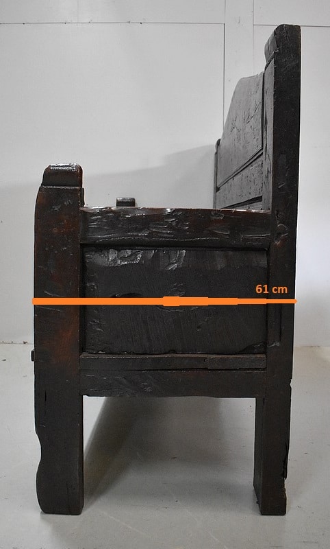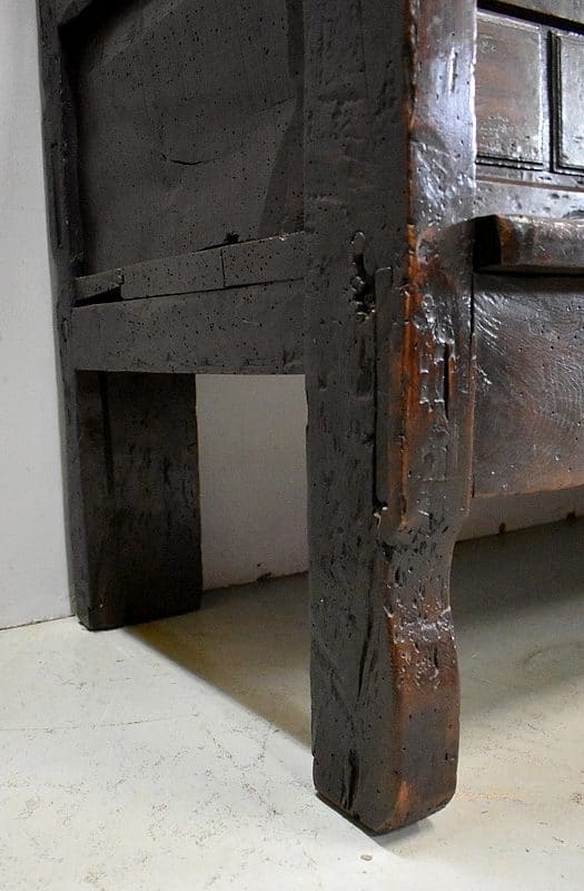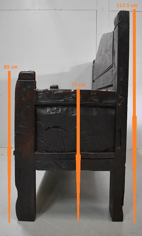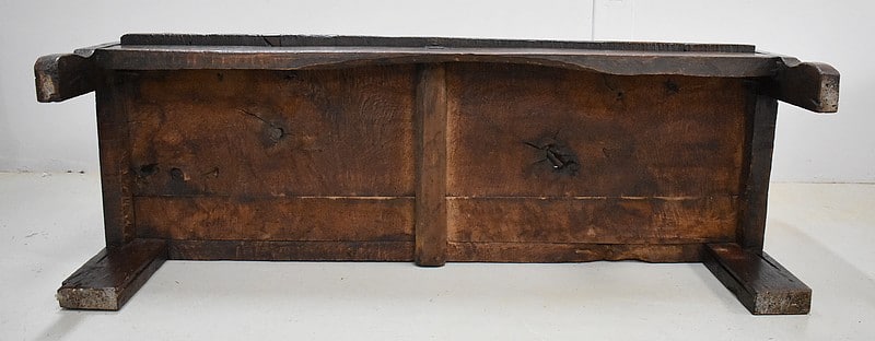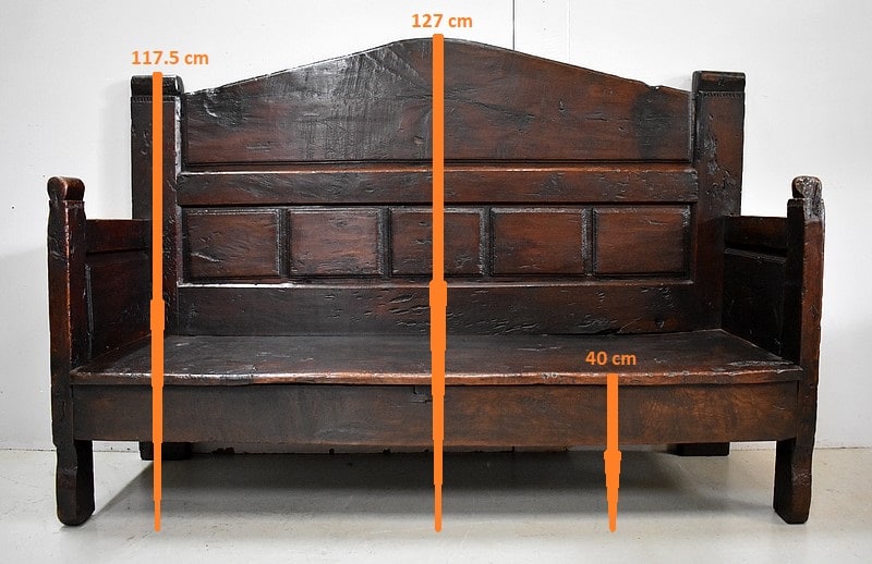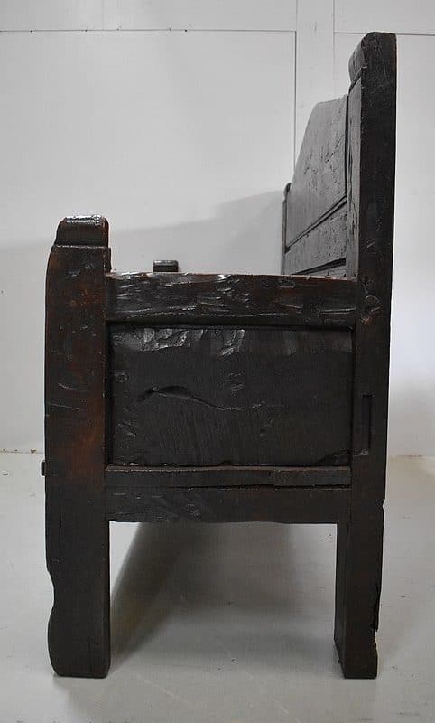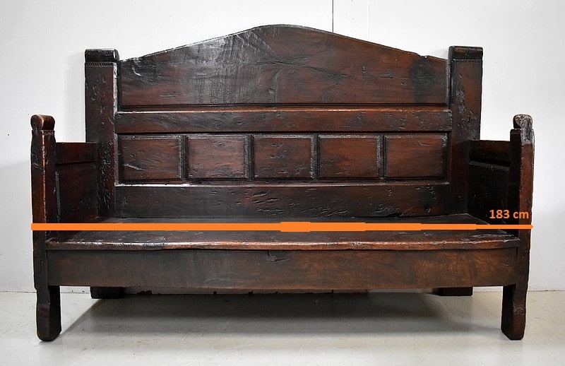Les mortaises apparentes renforcent l’Authenticité de ce Banc Quadricentenaire, qui trouvera sa place dans l’environnement Rustique d’une Propriété ou d’un Château à la hauteur de sa démesure. On pourra choisir – ou non – d’ajouter des Coussins à ce Siège, apportant ainsi Confort et Chaleur sans dénaturer l’ensemble.
