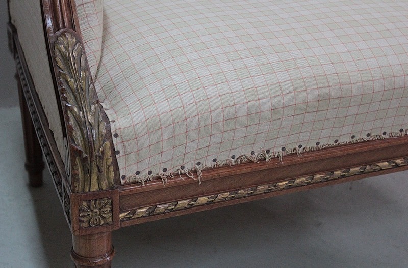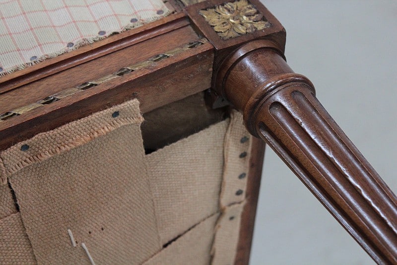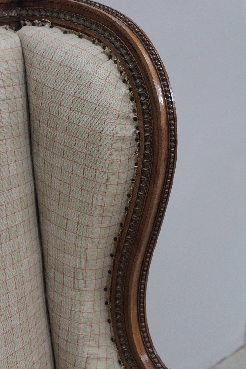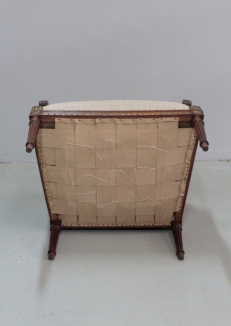 Tapisserie refaite à l’ancienne avec ressorts et crin animal. Tissu à carreaux à faire recouvrir selon vos goûts.